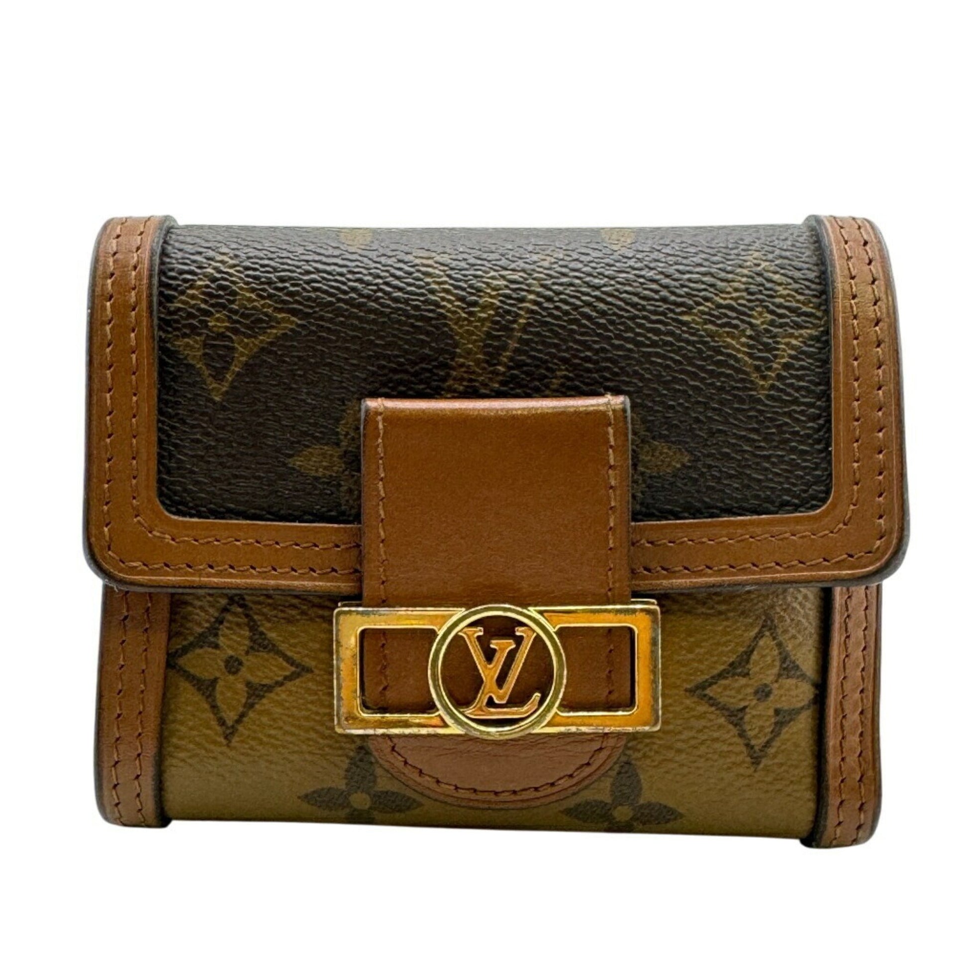 LOUIS VUITTON M68725 Portefeuille Dauphine Compact Flap Monogram Reverse Tri-fold Wallet, Brown, Women\'s