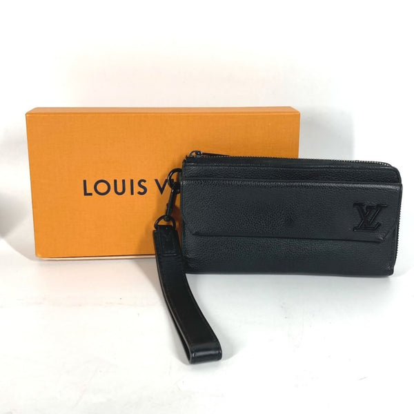 LOUIS VUITTON M69831 Aerogram Zippy Wallet, Round Zipper, Grained Leather, Men\'s, Noir Black
