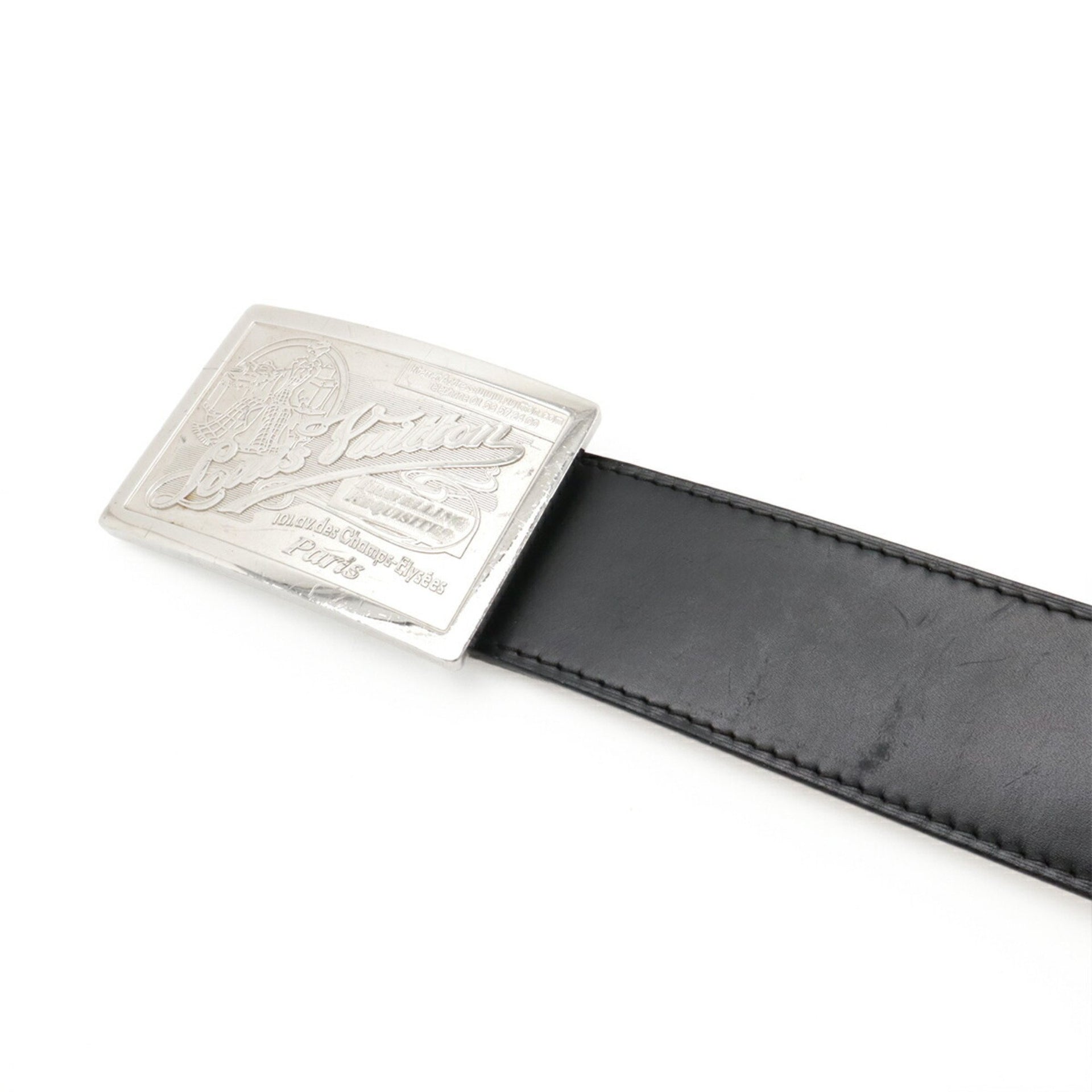 LOUIS VUITTON Santur Jeans Belt, Black Leather, Men\'s, #90, M6812U
