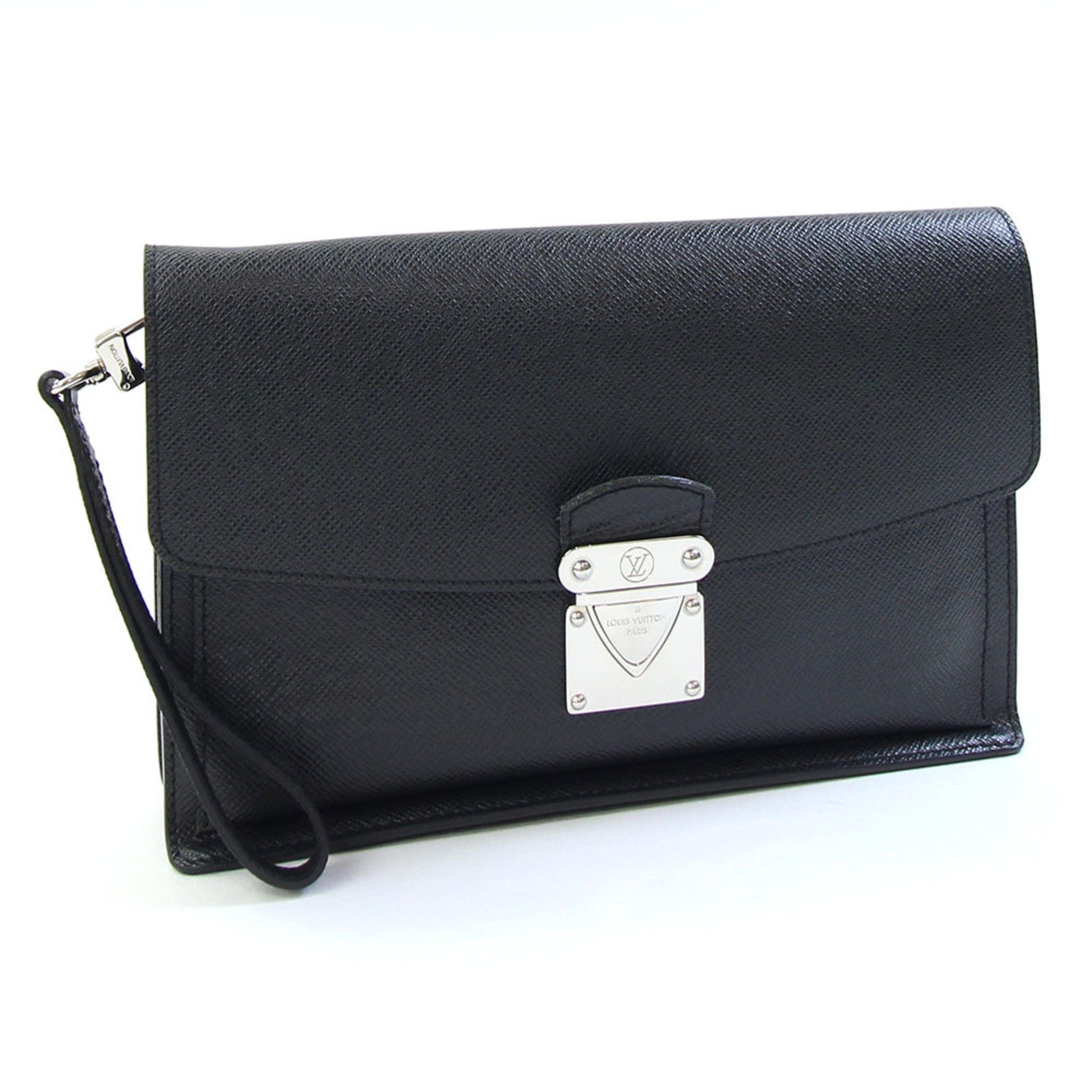 Louis Vuitton Taiga Belaia Clutch Bag M32592 Ardoise Second with Strap, Black, Men\'s LOUIS VUITTON