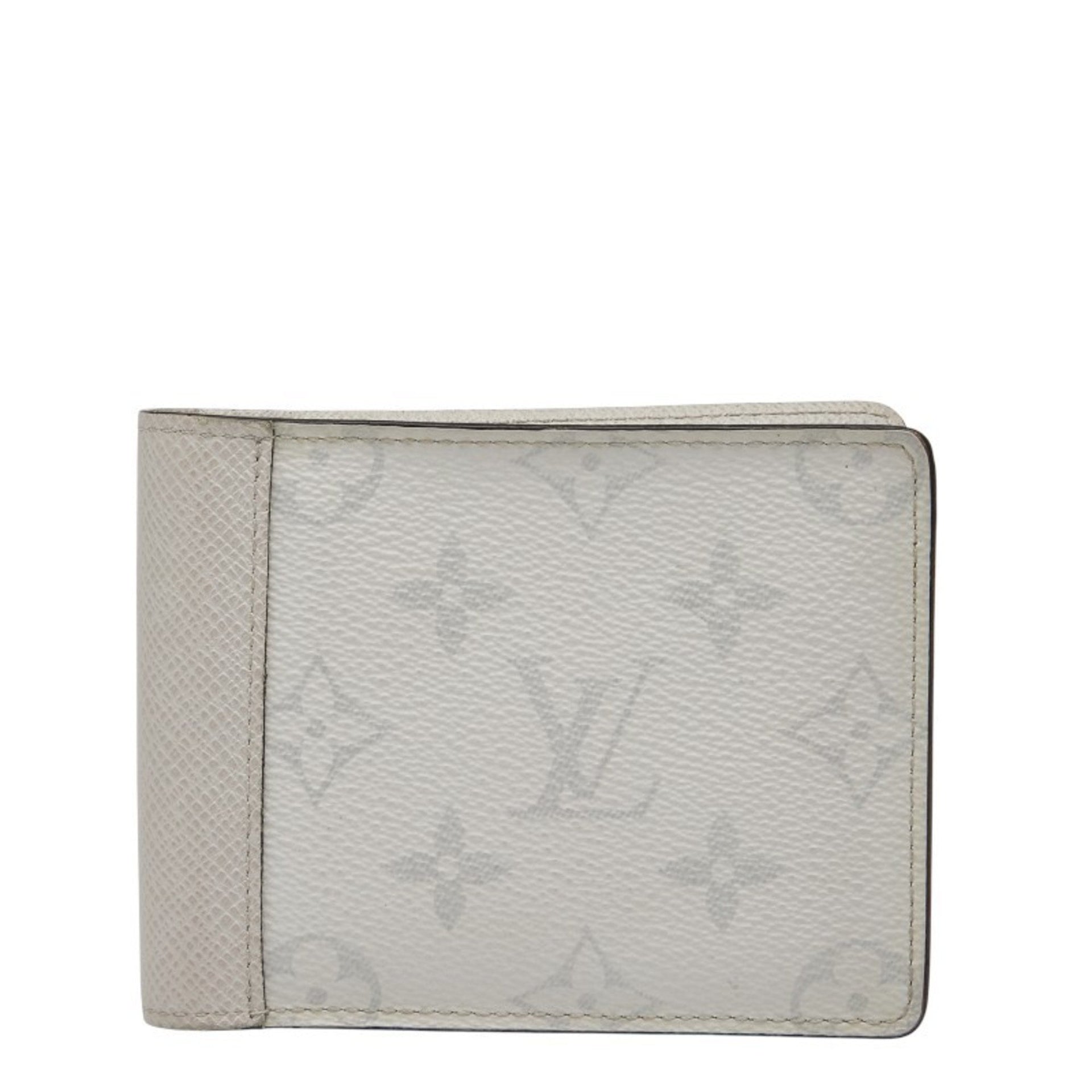Louis Vuitton Taigarama Portefeuille Multiple Bifold Wallet M30896 Antarctica White Leather Men\'s LOUIS VUITTON