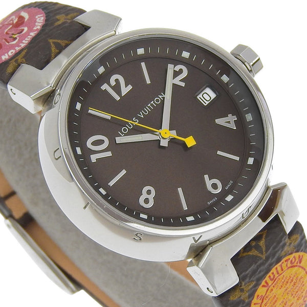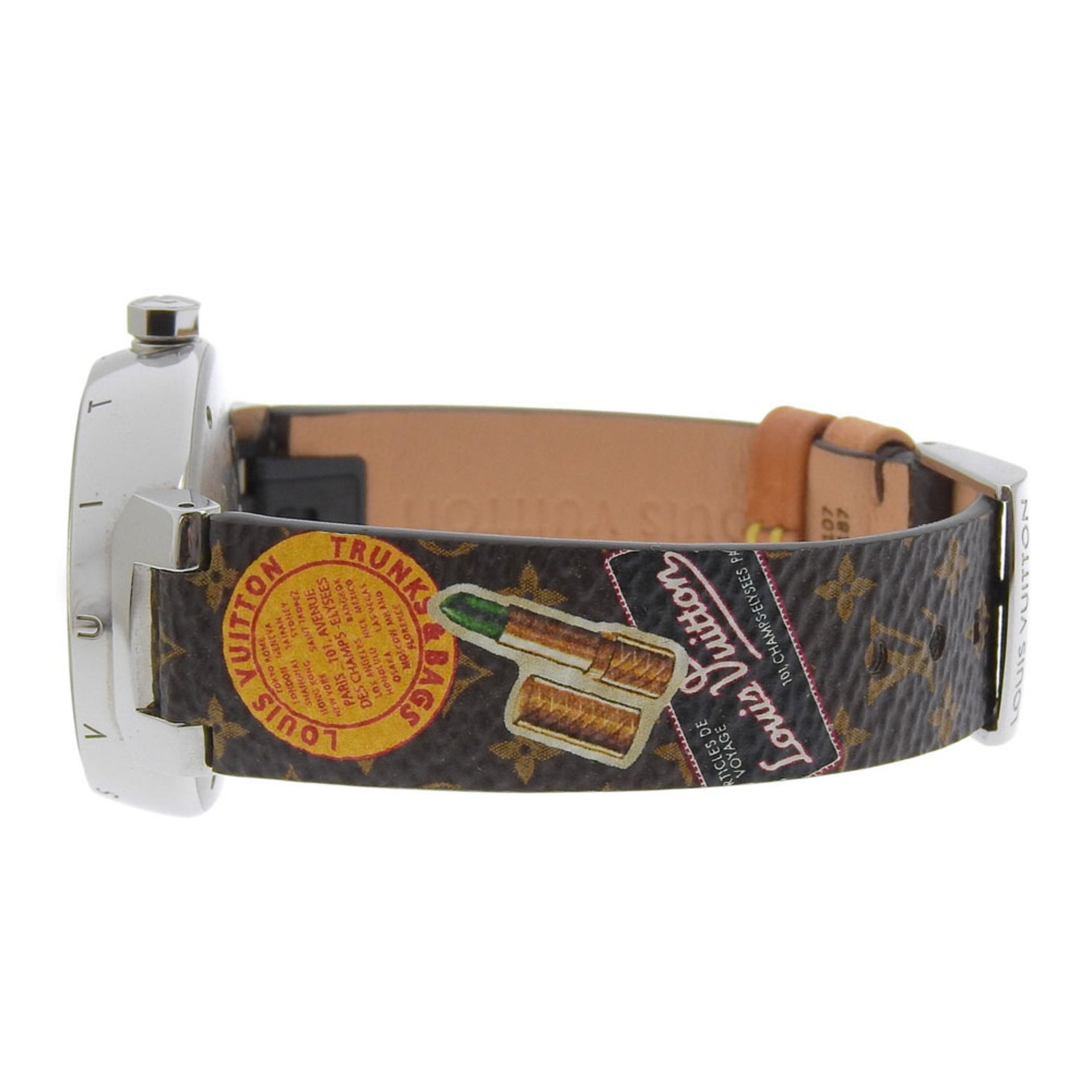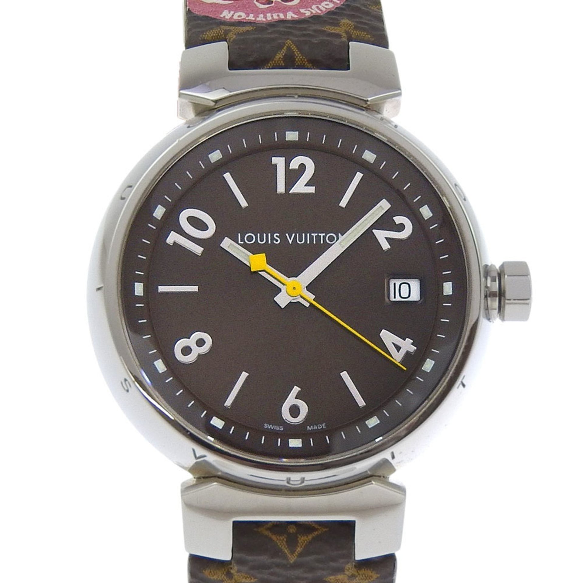 Louis Vuitton Tambour Watch Q1311, Stainless Steel and Leather Quartz Movement, Analog Display, Brown Dial, Unisex
