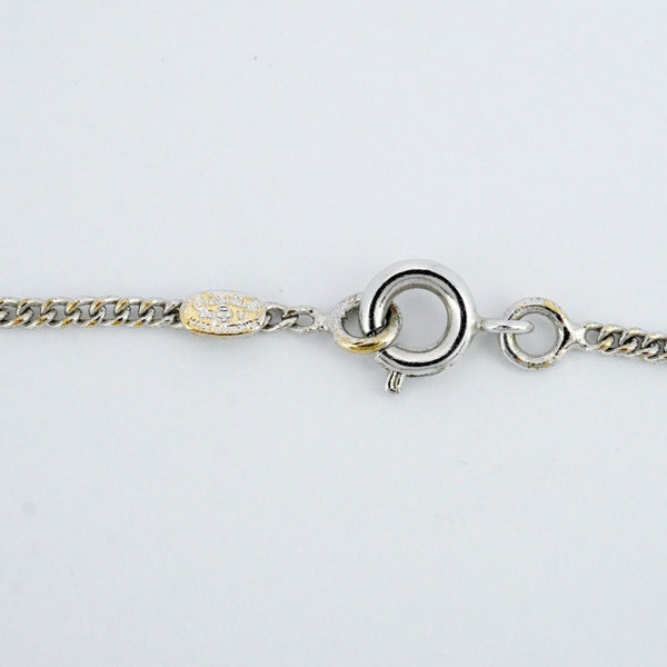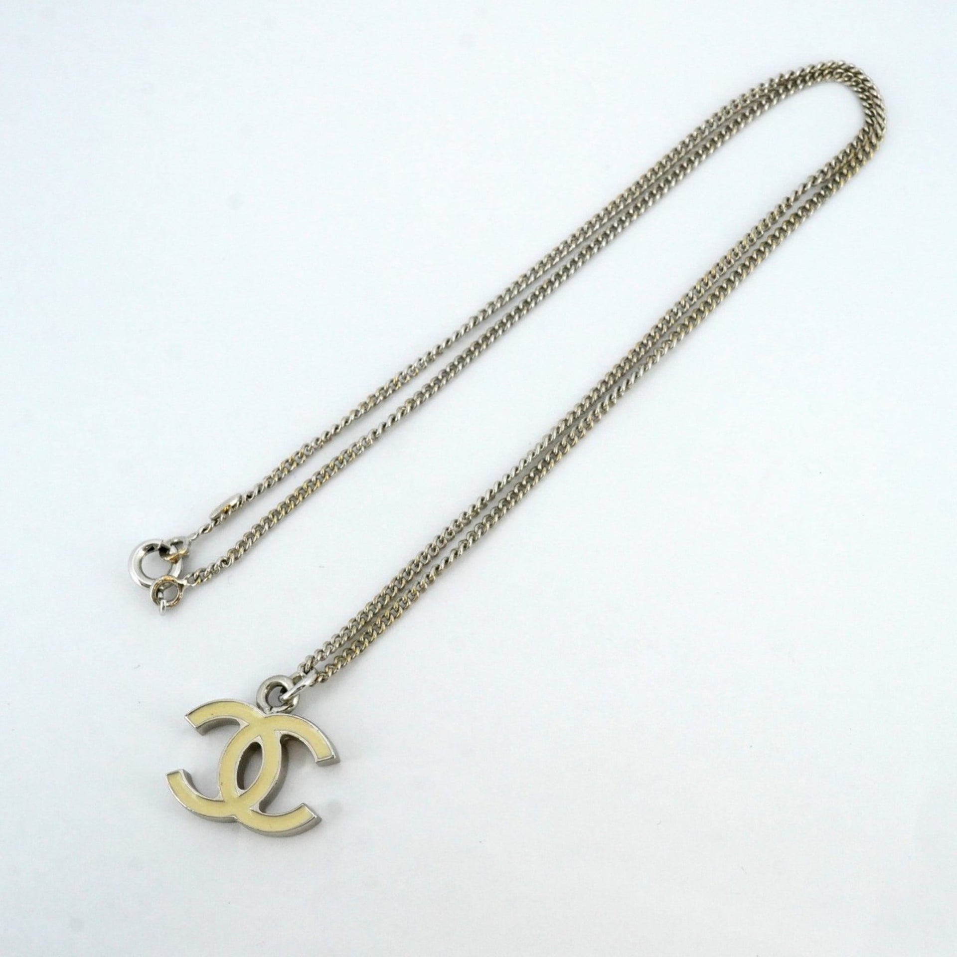 Chanel Coco Mark Metal Necklace Silver White Women\'s