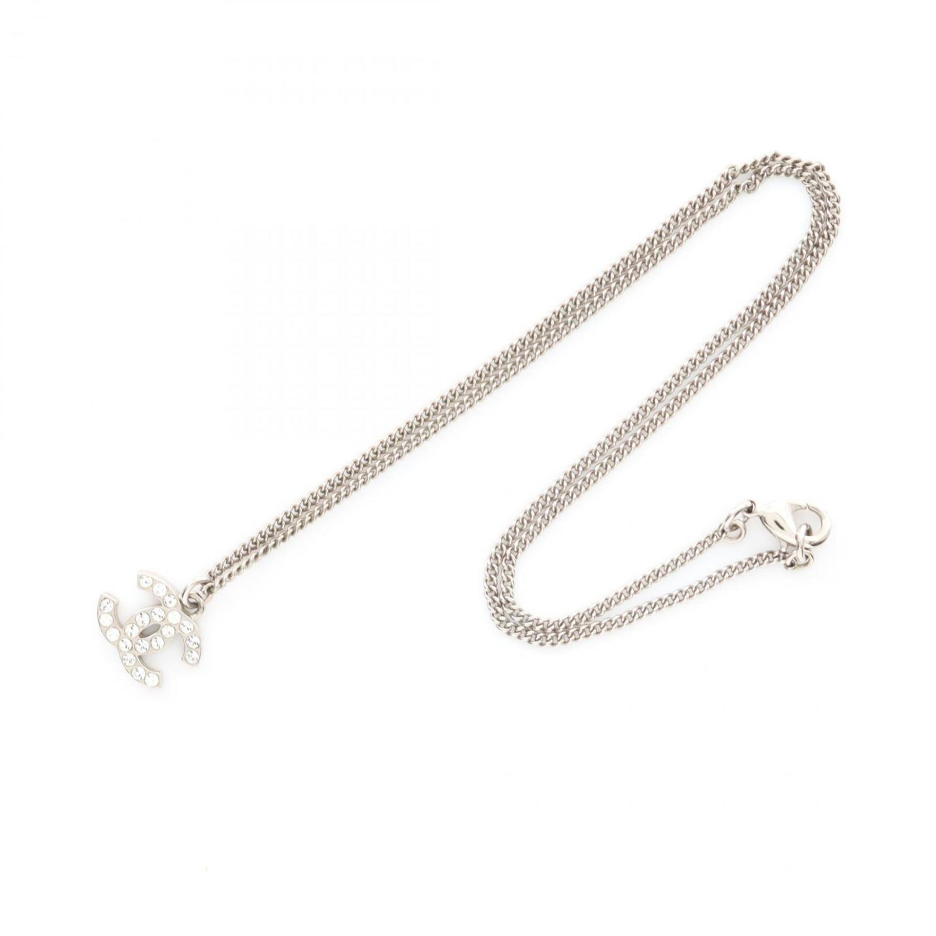 Chanel Coco Mark Necklace, Stainless Steel with Rhinestones, Women\'s, Silver and Clear