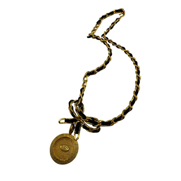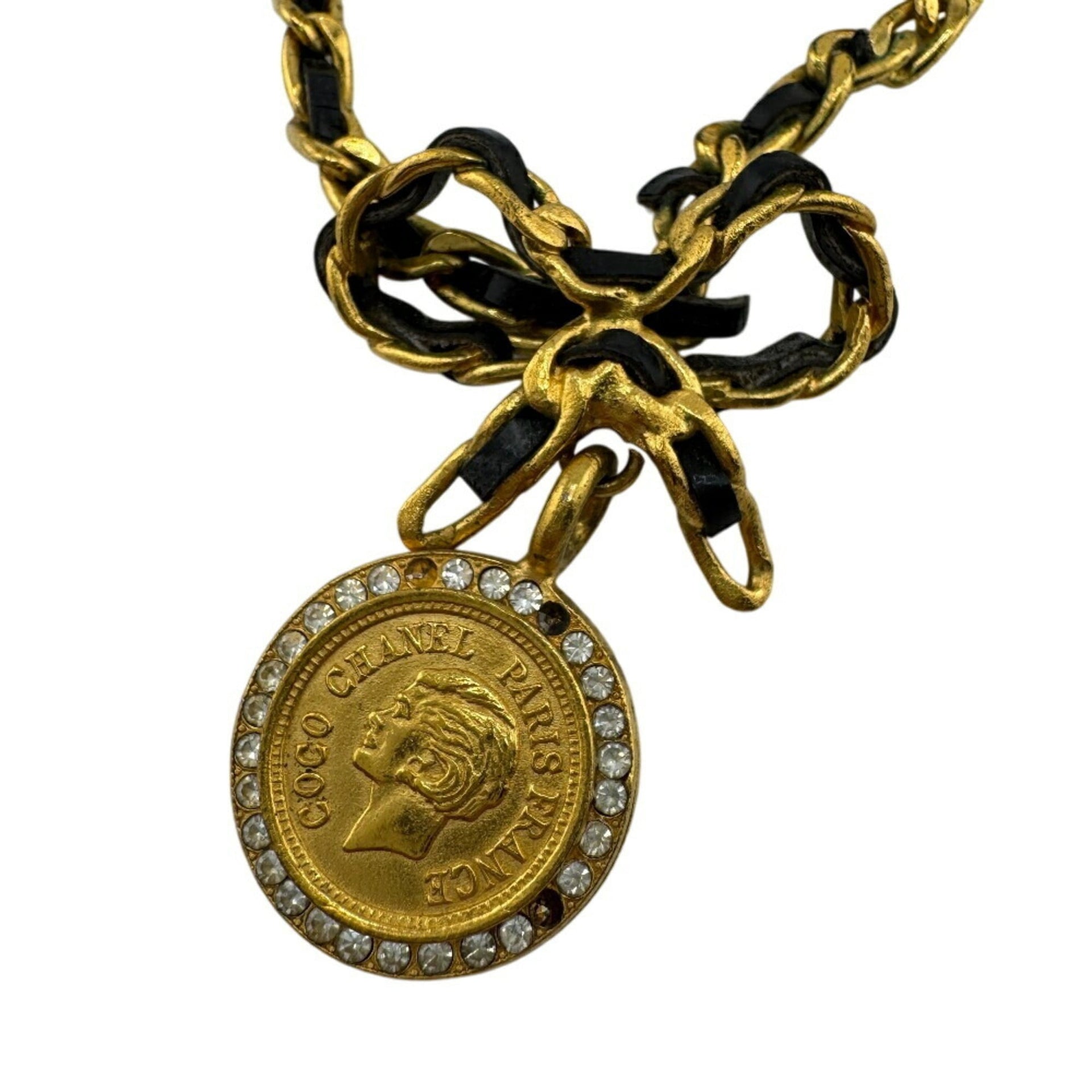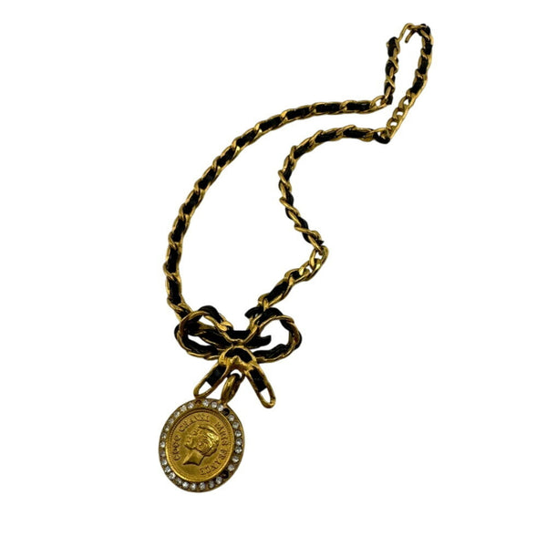 CHANEL Coin Ribbon Necklace 96P (1996) Choker Chain Black Women\'s