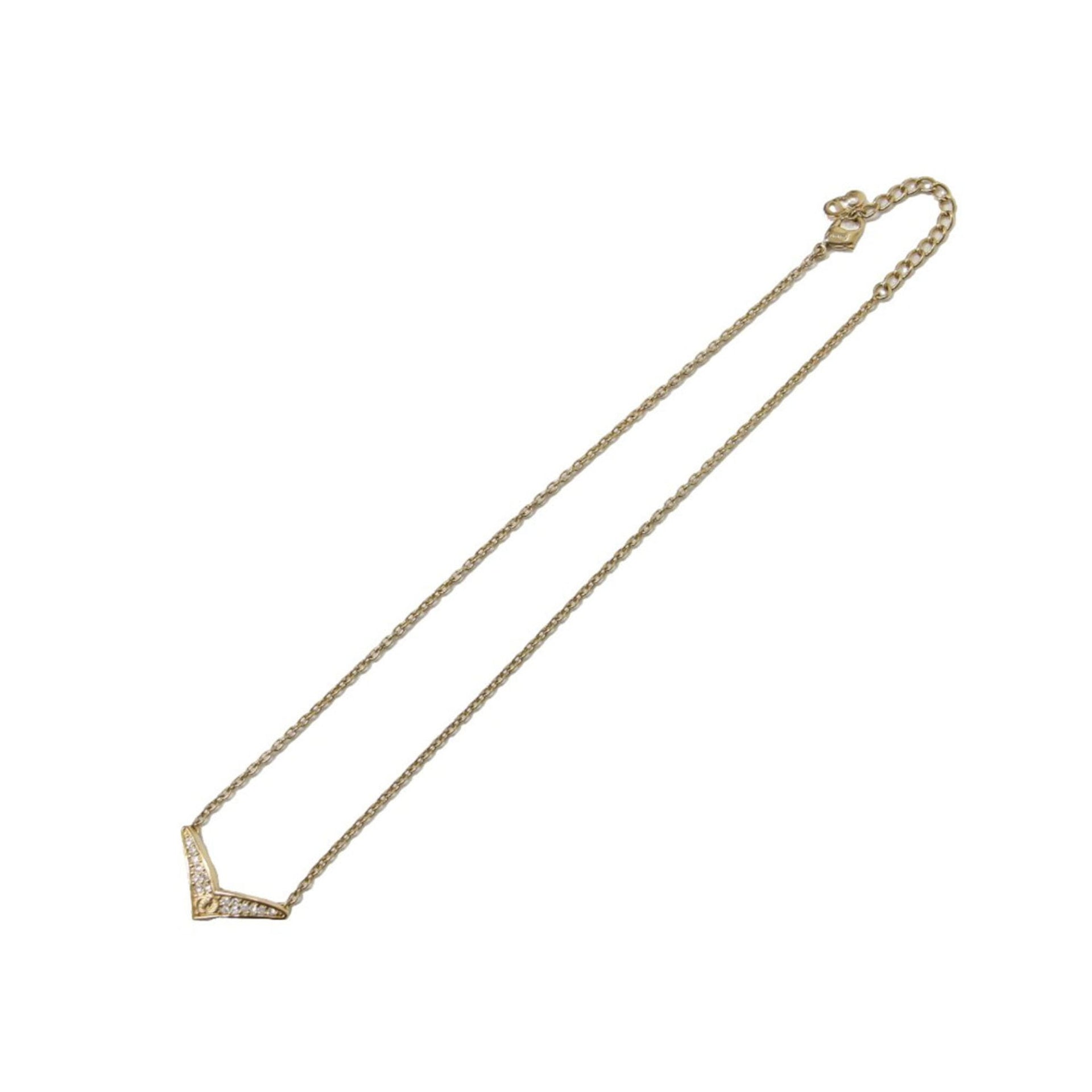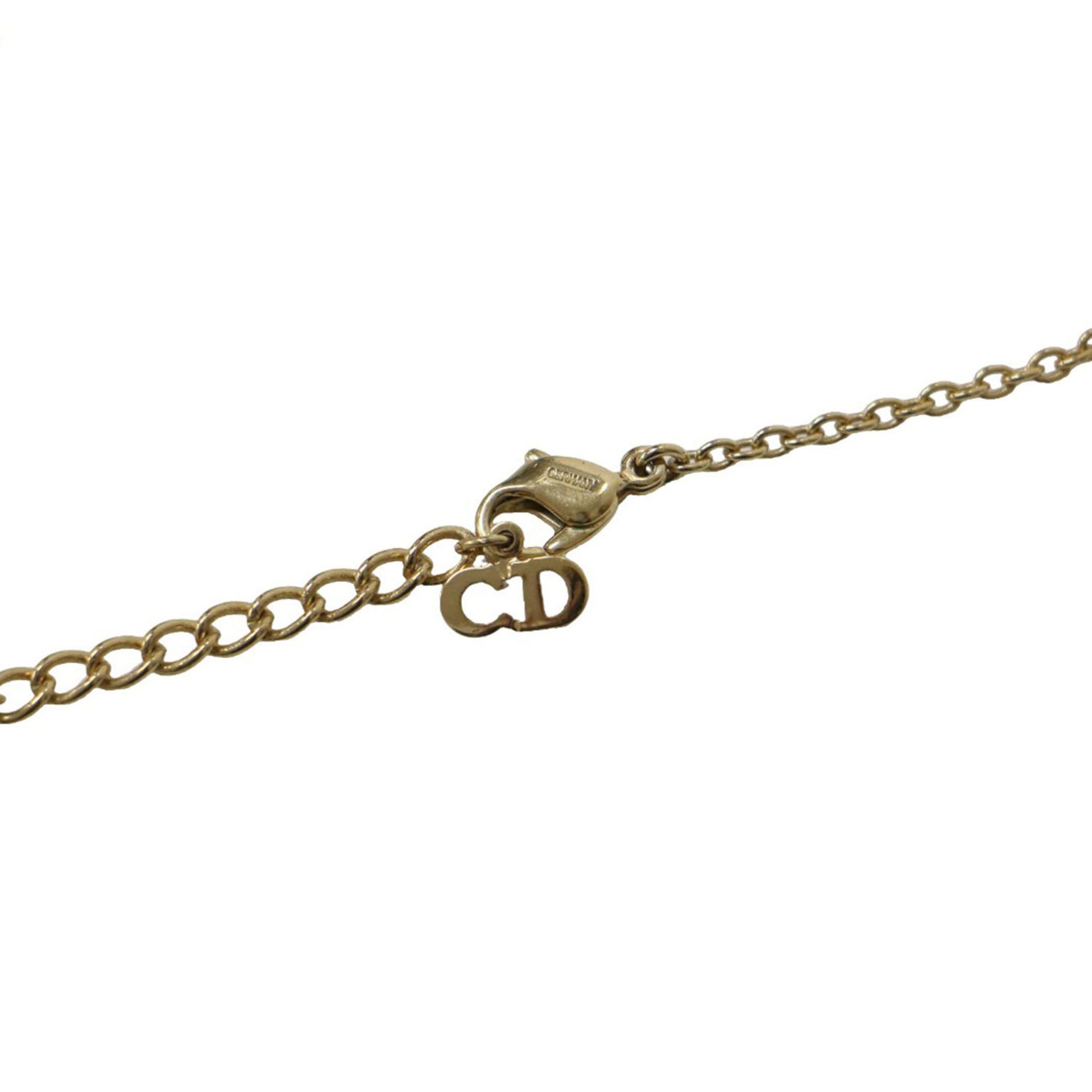 Christian Dior CD Rhinestone Necklace Pendant GP Gold Luxury