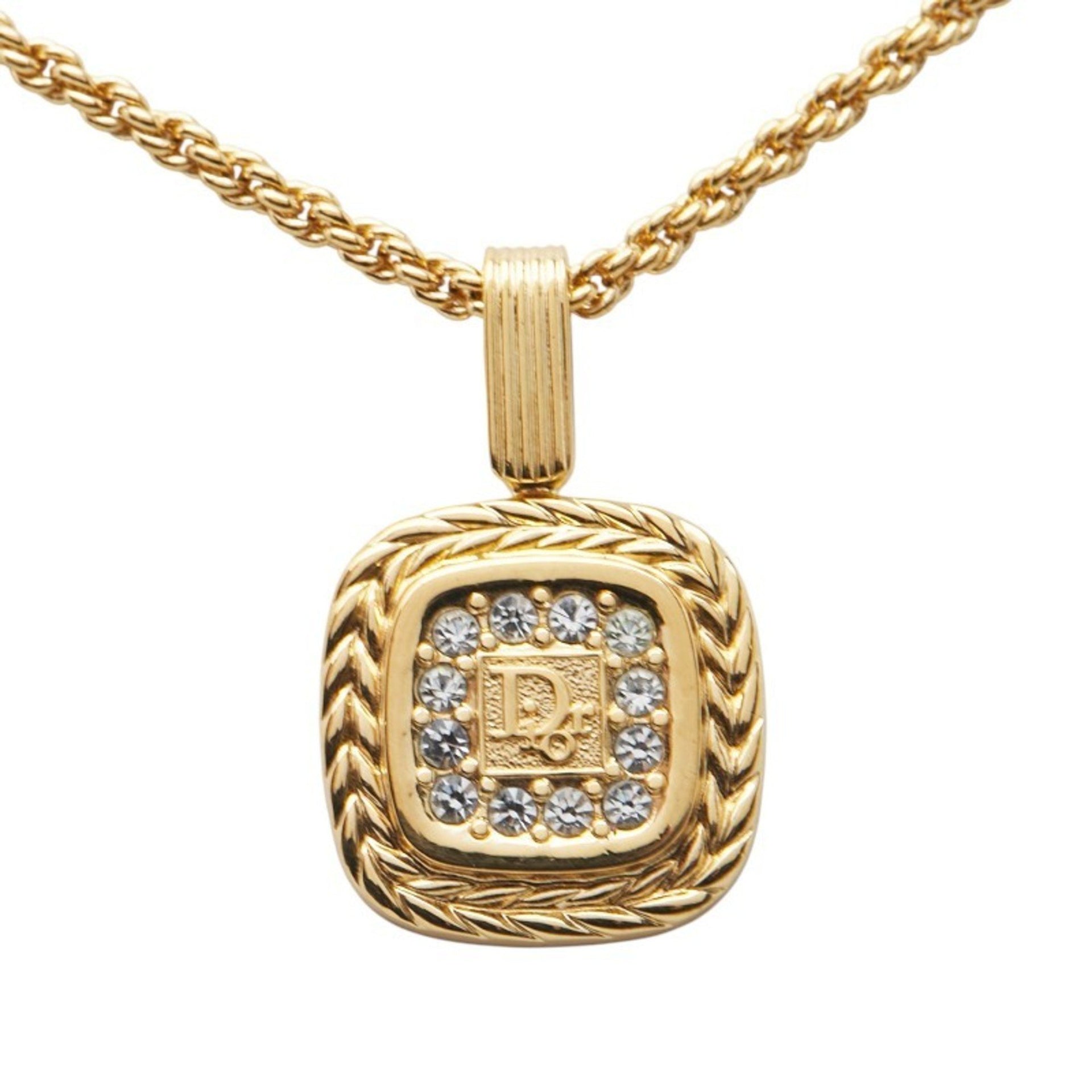 Christian Dior Dior logo rhinestone necklace, gold plated, for women.