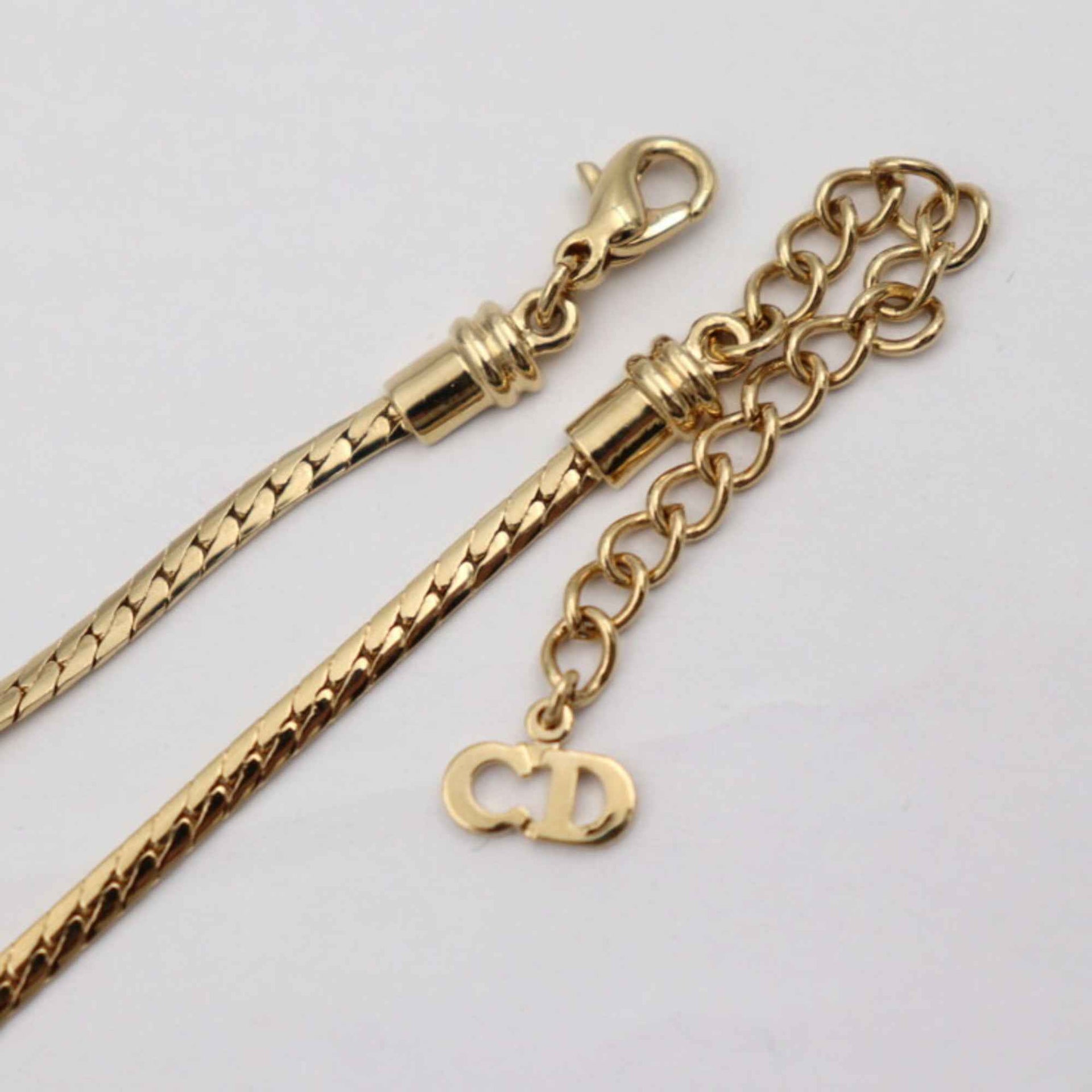 Christian Dior Necklace Metal Rhinestone Gold Black CD Logo Choker