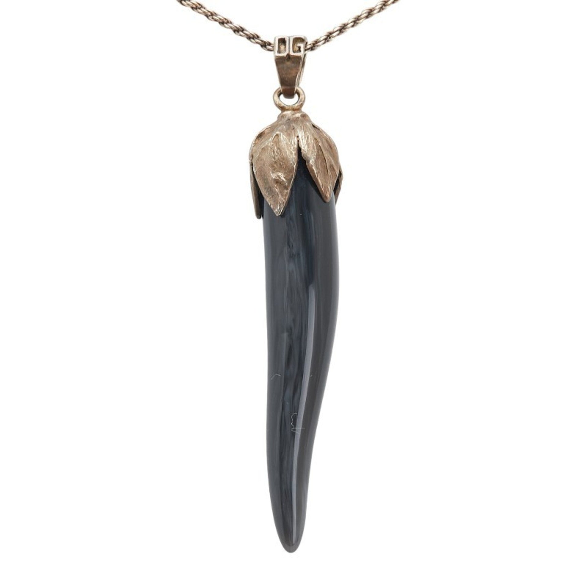 Dolce & Gabbana Corno Necklace in Silver with Black Plastic and SV925 for Women