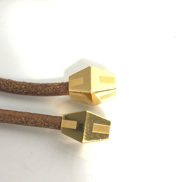 HERMES Lanier necklace with metal hardware, leather, brown, for women