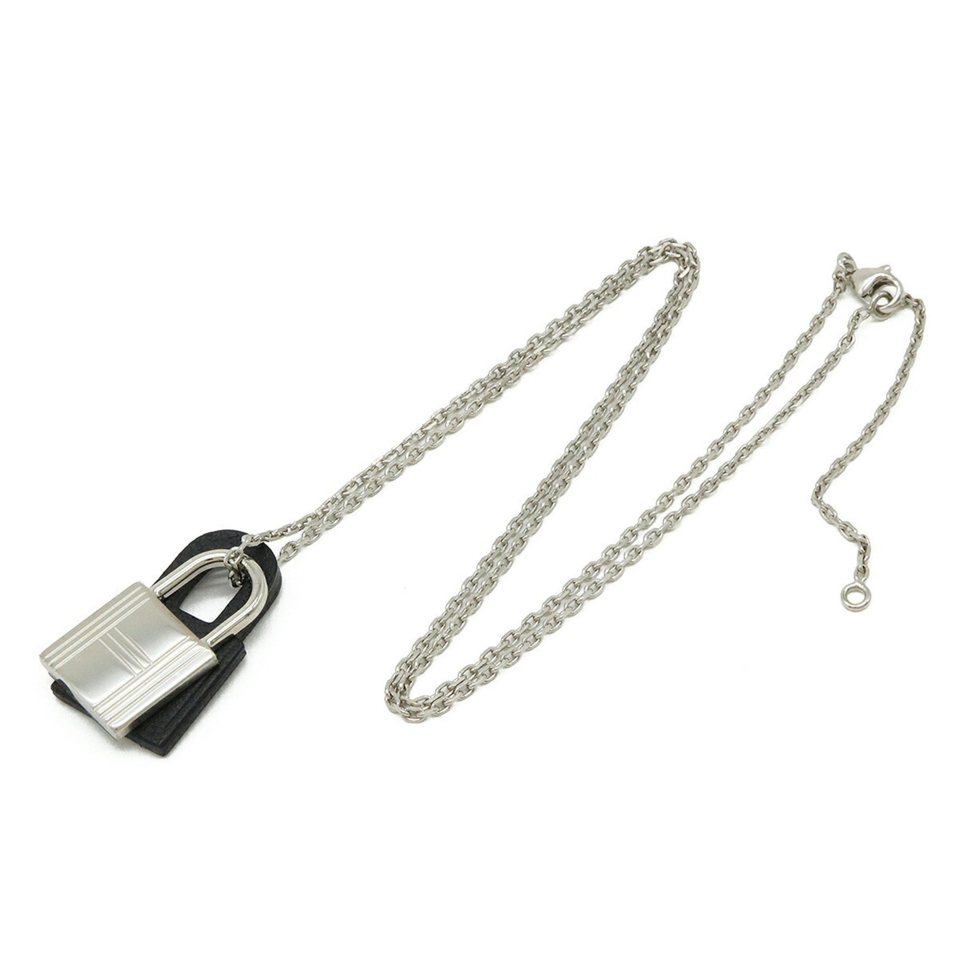 HERMES O\'Kelly PM Padlock Pendant Necklace Metal Leather Black D Engraved
