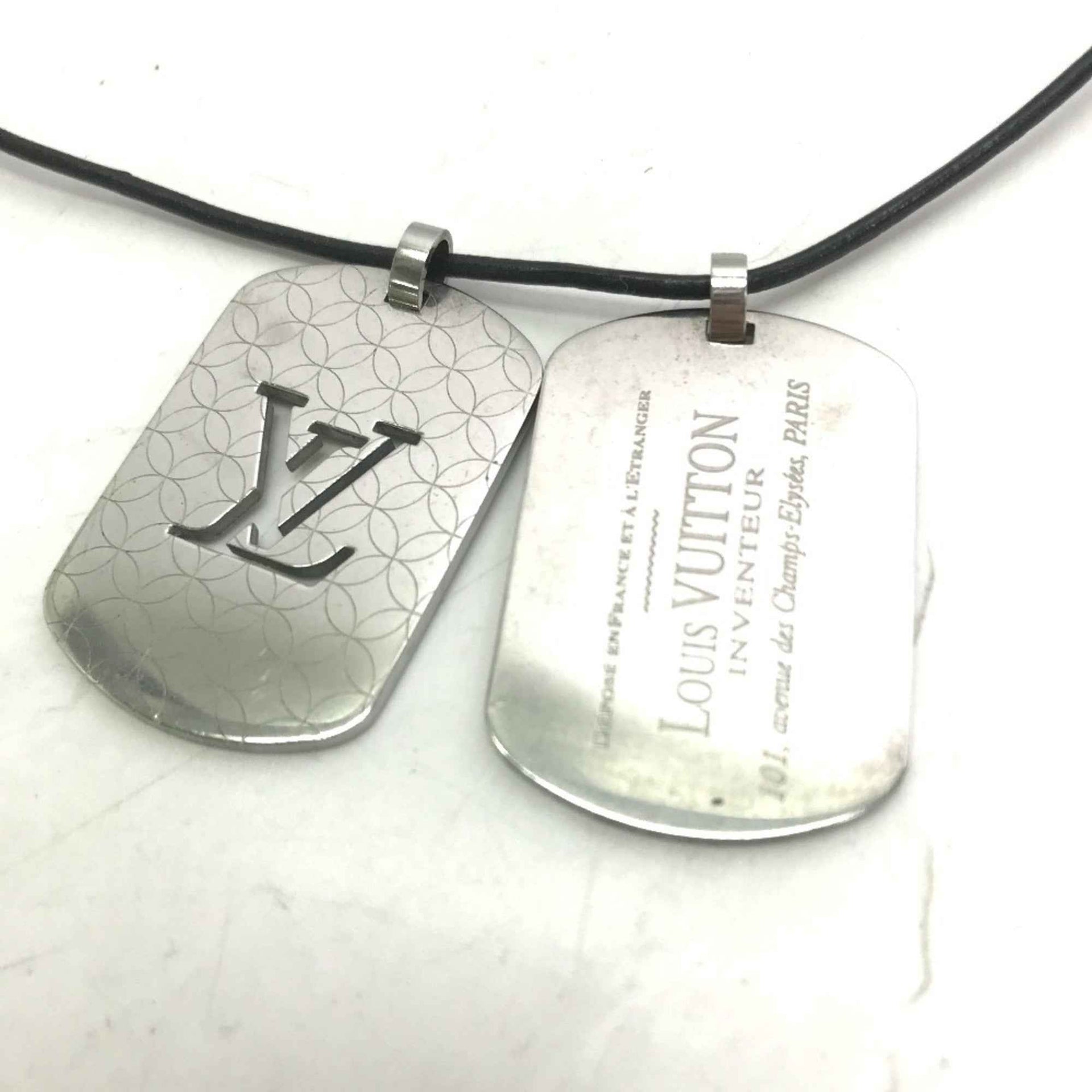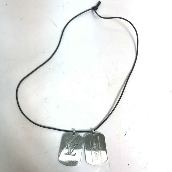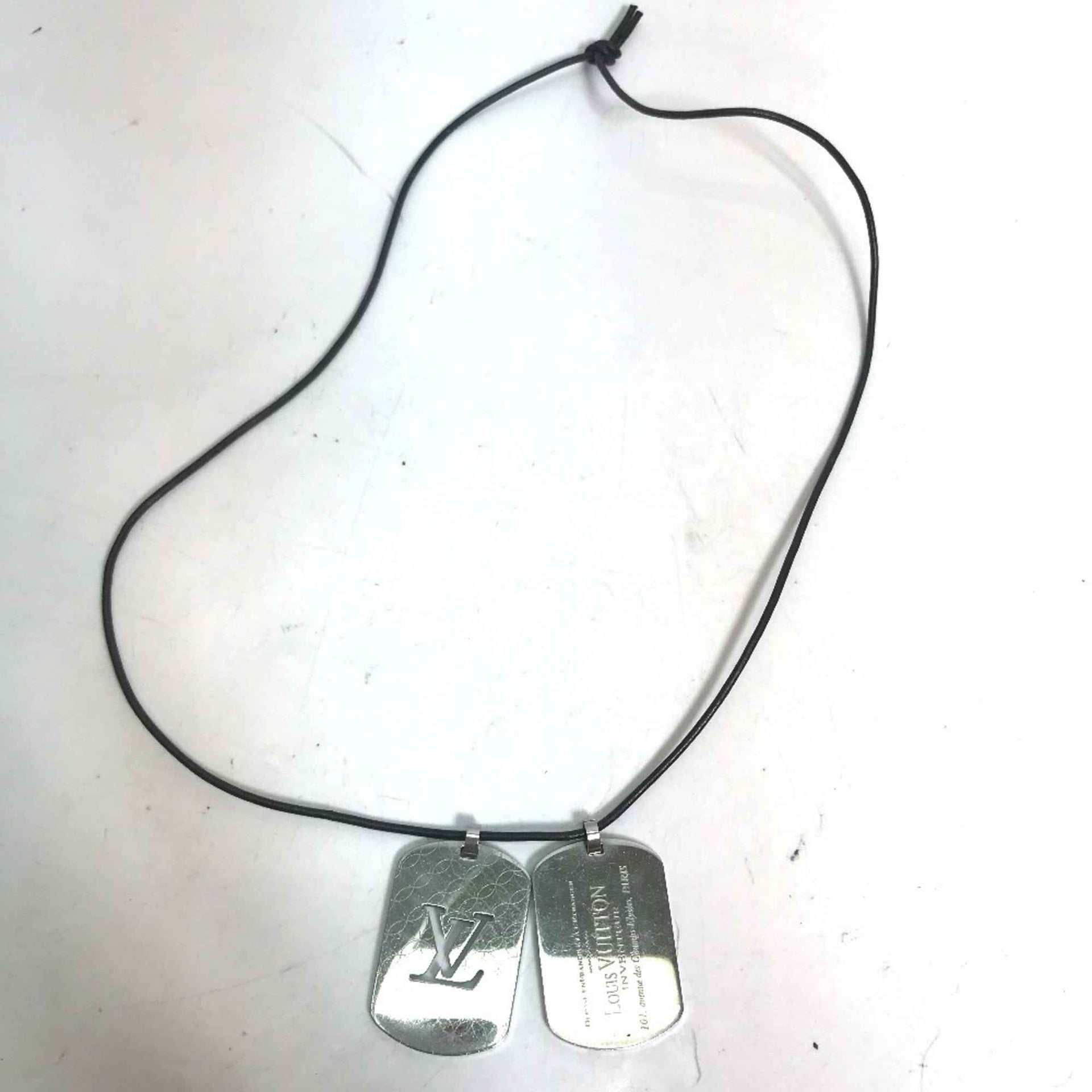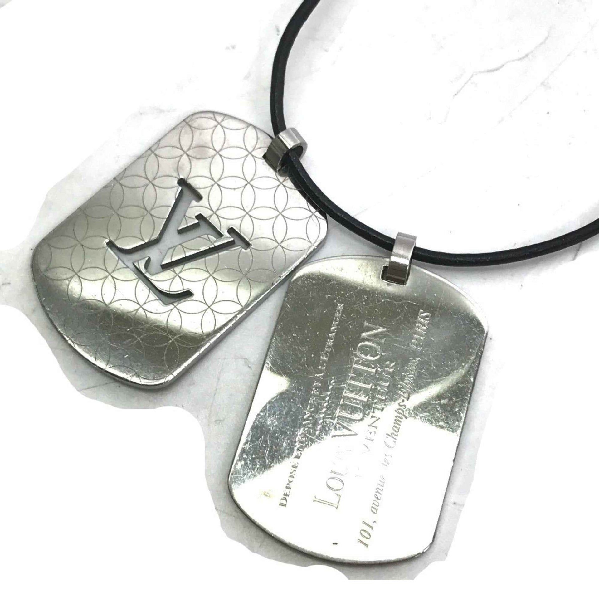 LOUIS VUITTON M65453 Pendant Champs Elysees GM Leather Cord Necklace SS Men\'s Silver