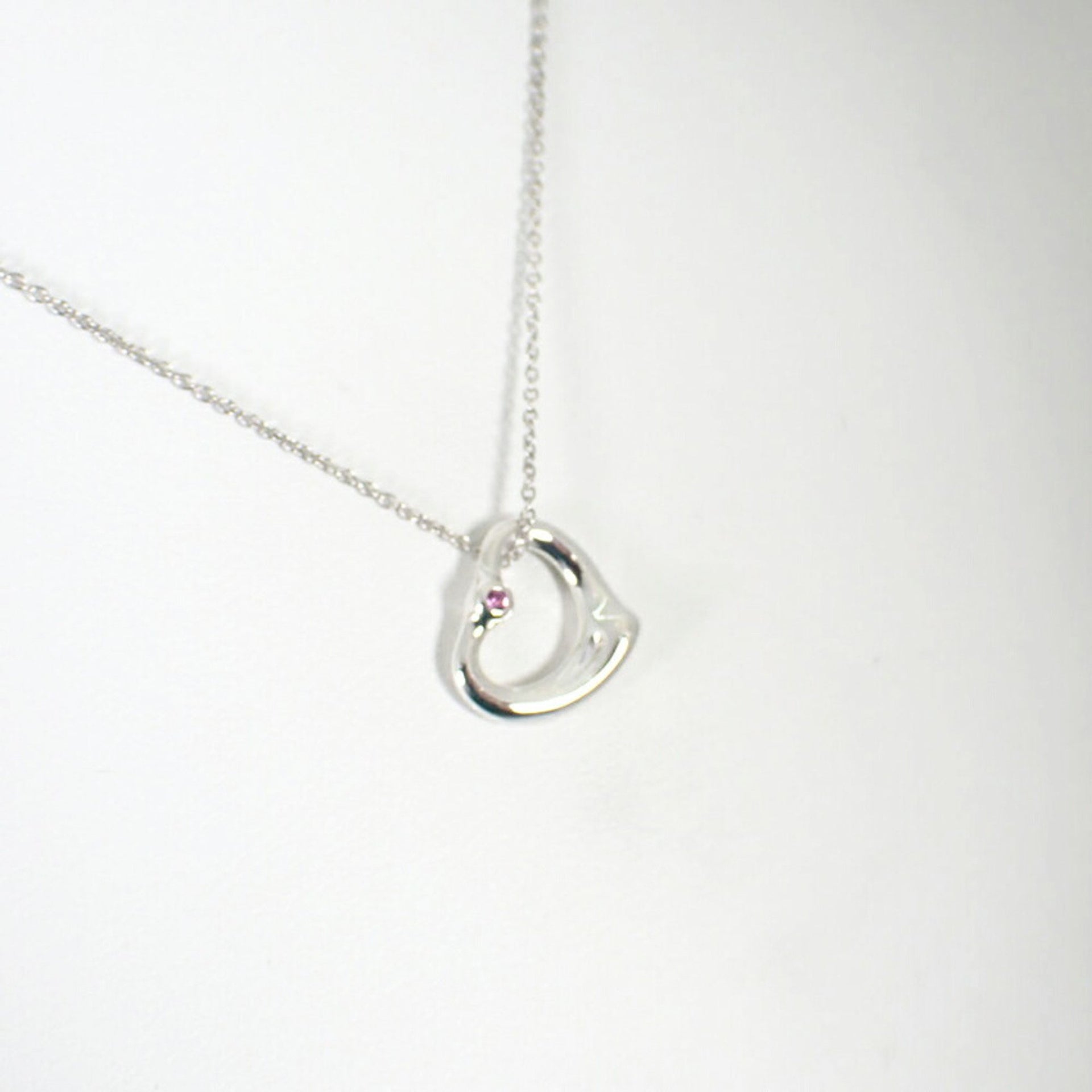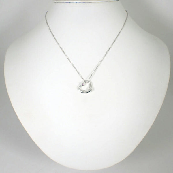 TIFFANY 925 Pink Sapphire Heart Pendant Necklace j88-10
