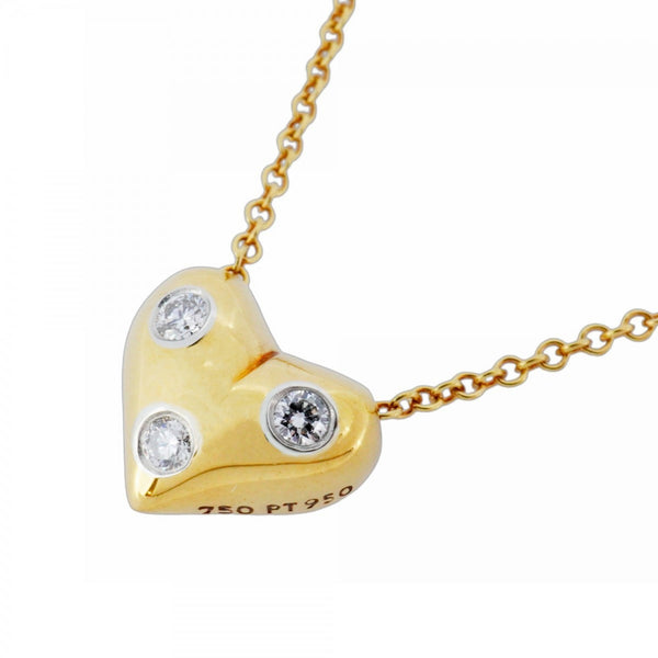 Tiffany Necklace Dots Heart Motif 3PD 18KYG Yellow Gold Pt950 Platinum Diamond Women\'s
