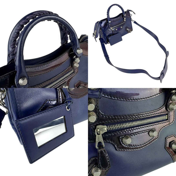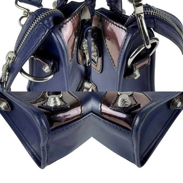 Balenciaga Giant Mini City Handbag/Shoulder Bag in Navy Leather and Patent Leather, Women\'s, 309544 z7019