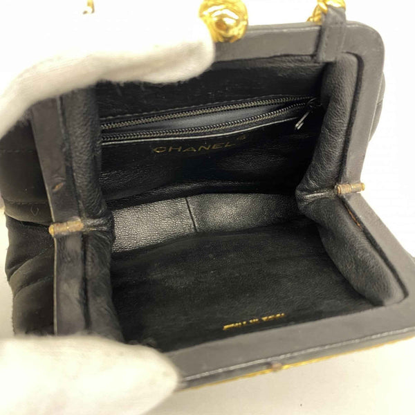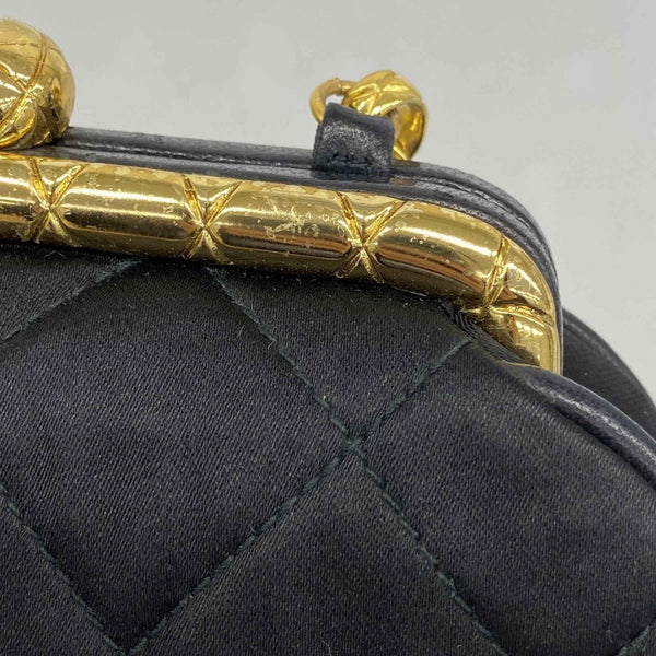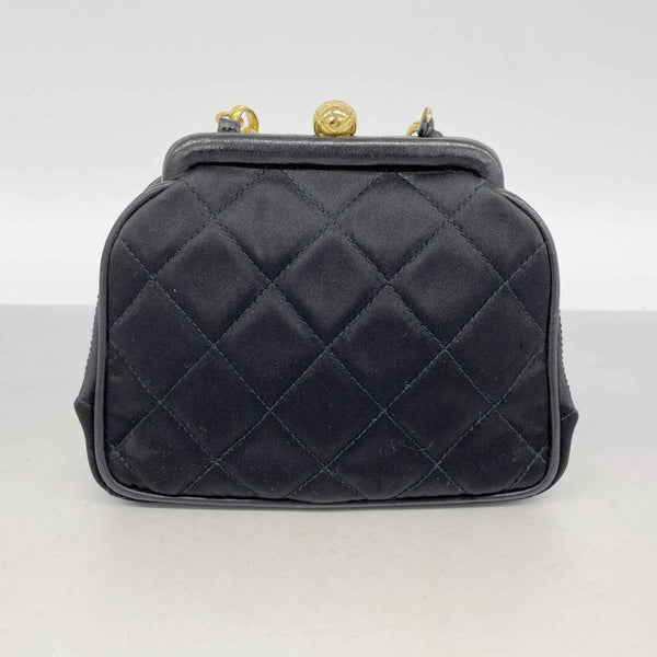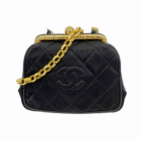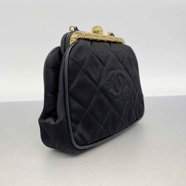 Chanel Matelasse Pochette Chain Shoulder Bag in Satin, Black, Women\'s