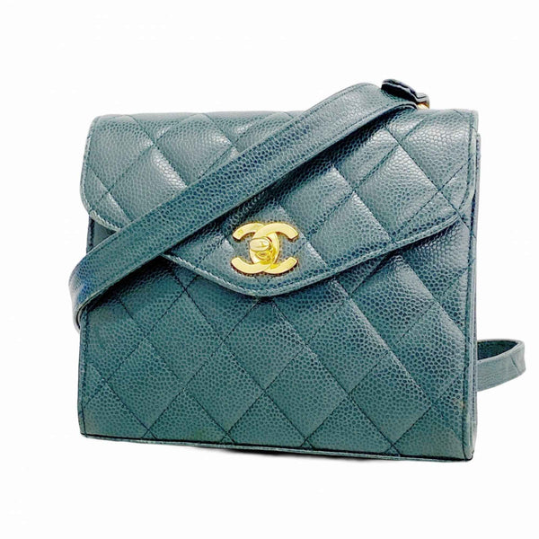 Chanel Matelasse Shoulder Bag in Caviar Skin, Green, Women\'s