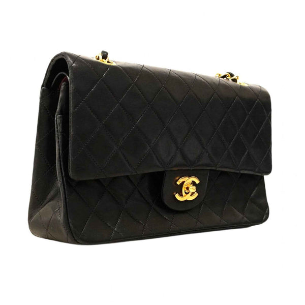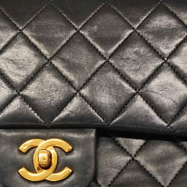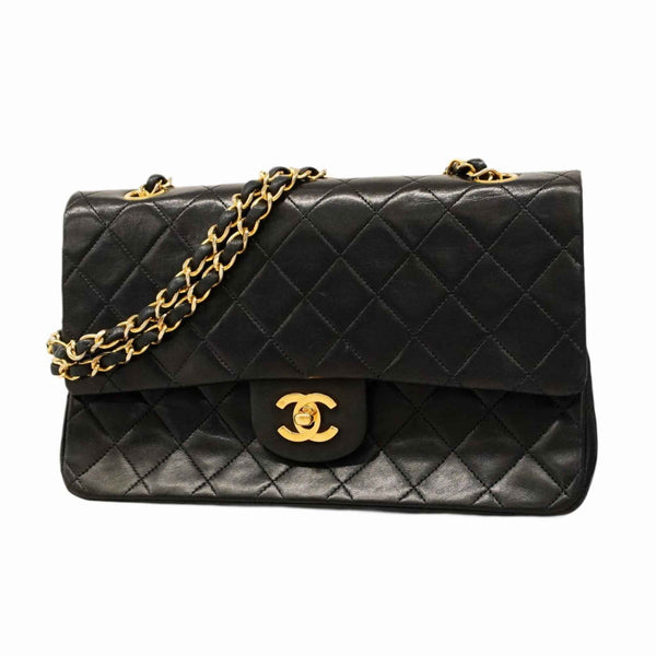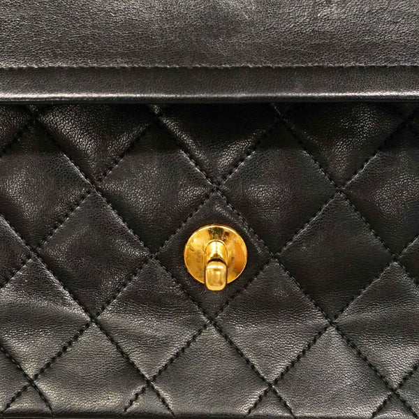 Chanel Matelasse Shoulder Bag with Double Flap and Chain, Lambskin, Black, Women\'s