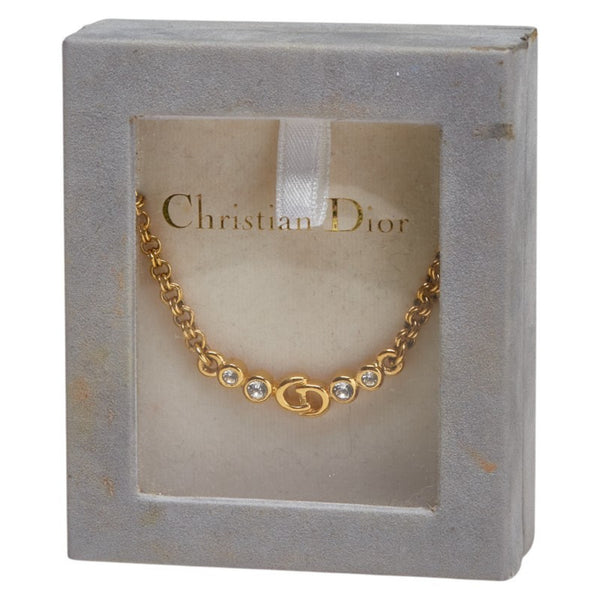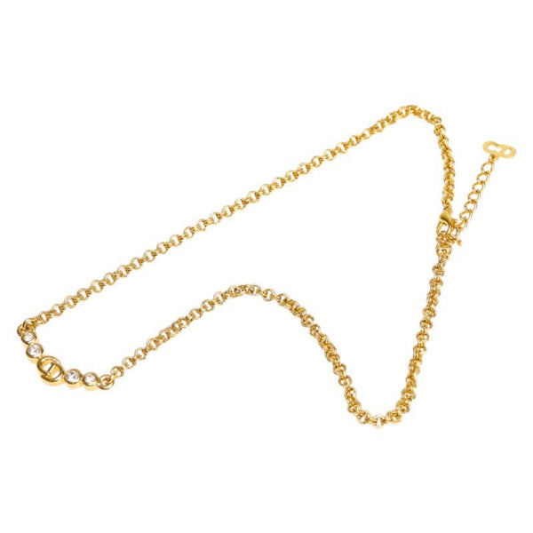 Christian Dior Dior CD logo rhinestone necklace, gold plated, for women.