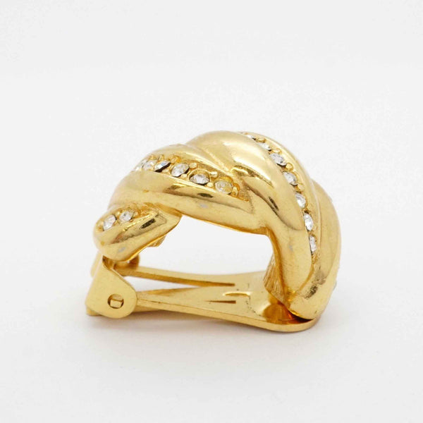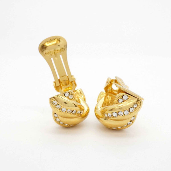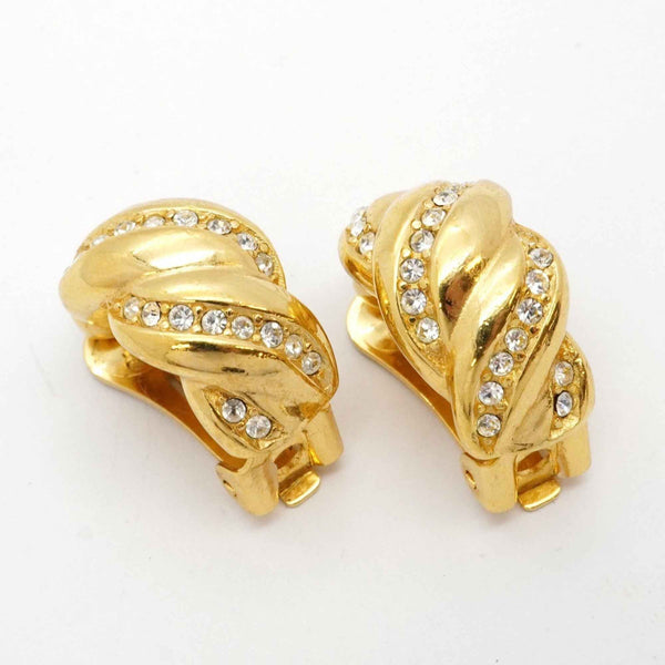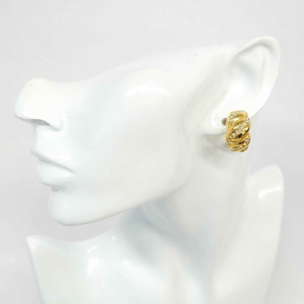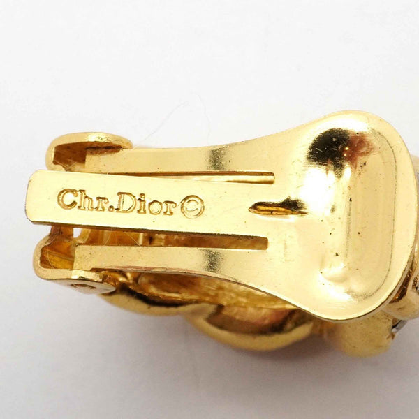 Christian Dior Earrings, GP Plated, Rhinestone, Gold, Women\'s