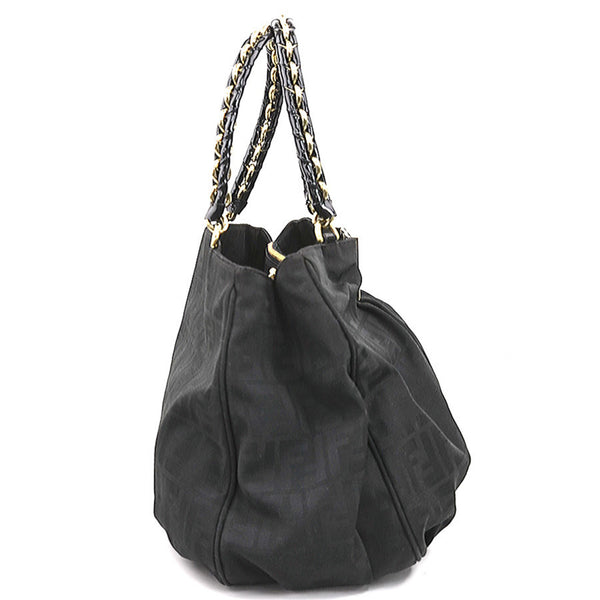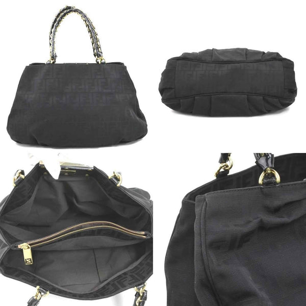 Fendi Zucca Mia Shoulder Bag in Nylon Canvas/Patent Leather, Black and Gold, Women\'s, 2415-8BR616, e61252k