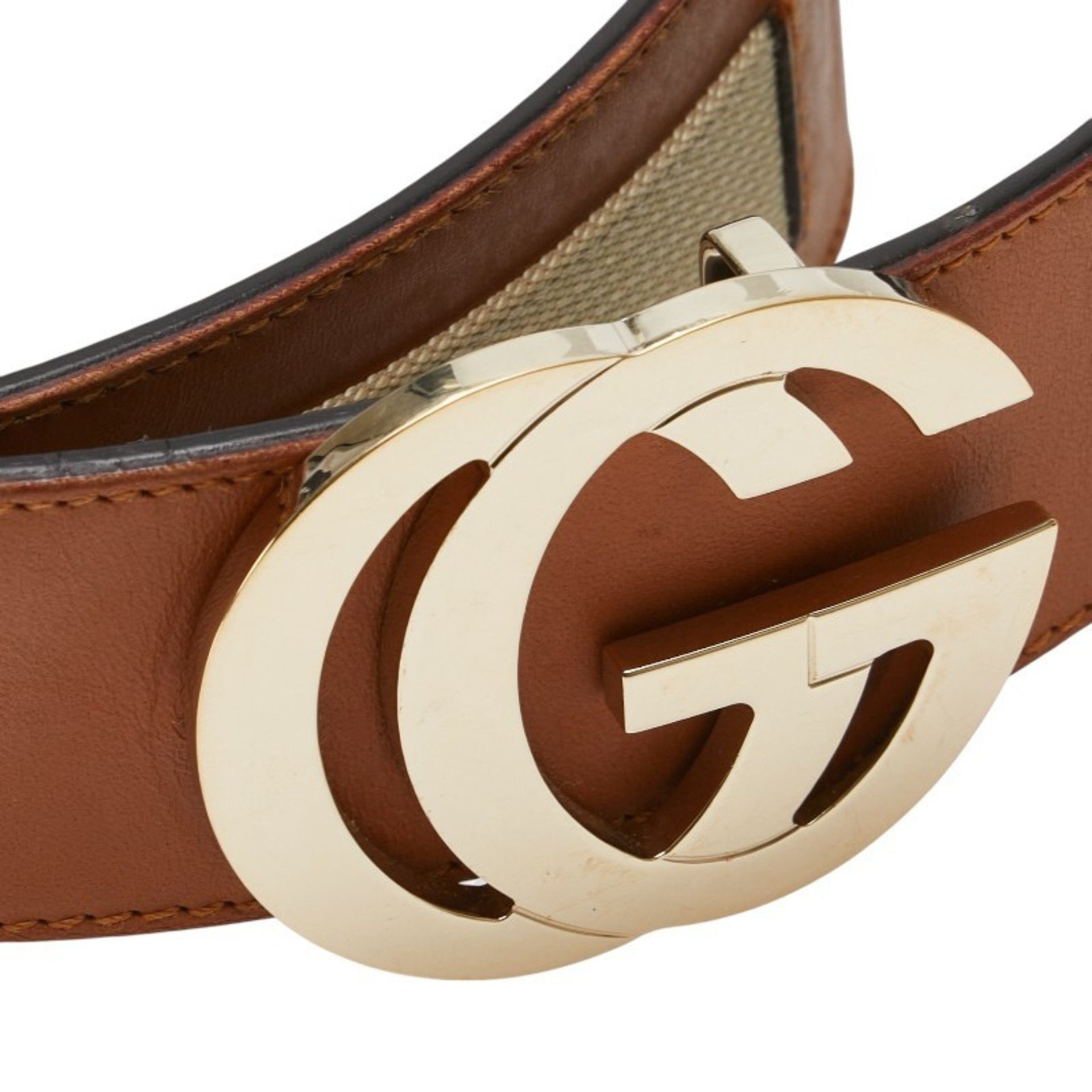 Gucci Double G Belt, Sizes: 80/32, 212956, Brown/Beige Leather/Nylon, Men\'s, GUCCI
