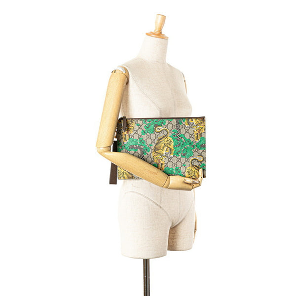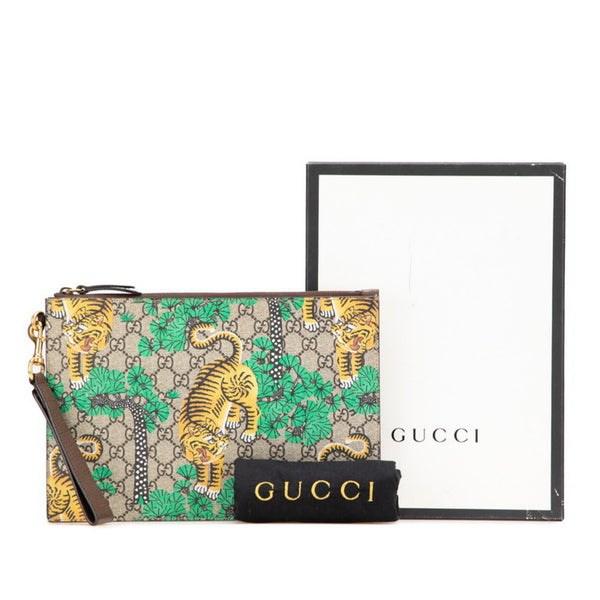 Gucci GG Supreme Tiger Clutch Bag 451473 in Brown, Green, and Yellow Leather for Women