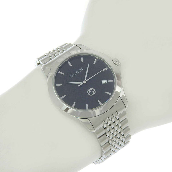 Gucci Interlocking G Date 126 4 Black Dial Stainless Steel Quartz Battery Operated 37mm Men\'s Watch