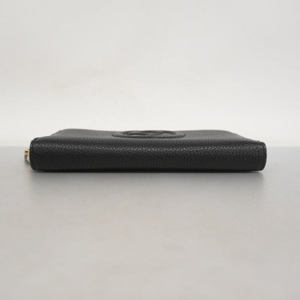Gucci Soho Long Wallet 598187 Leather Black Champagne Women\'s