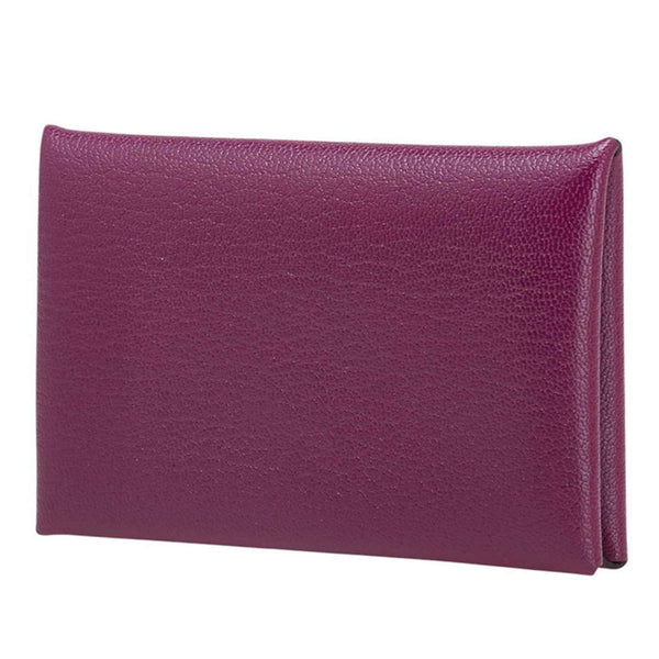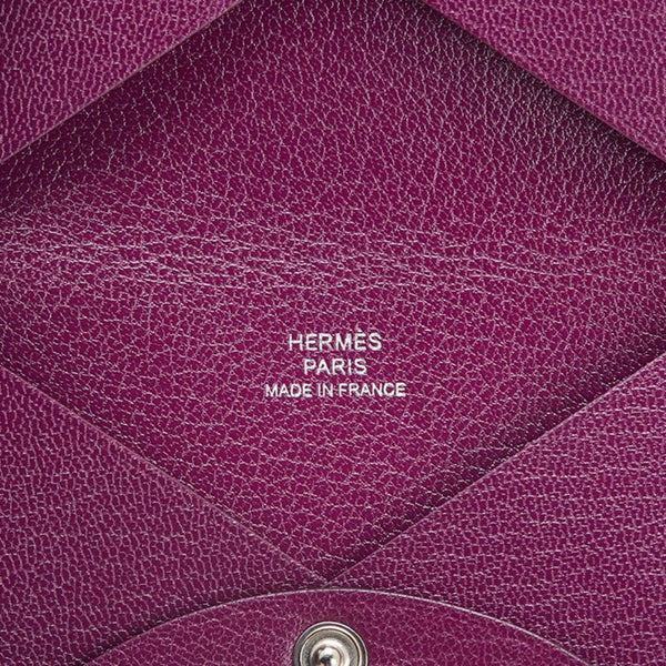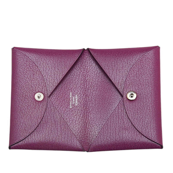 Hermès Calvi Wallet/Coin Case Pass Anemone Purple Chevre Women\'s HERMES