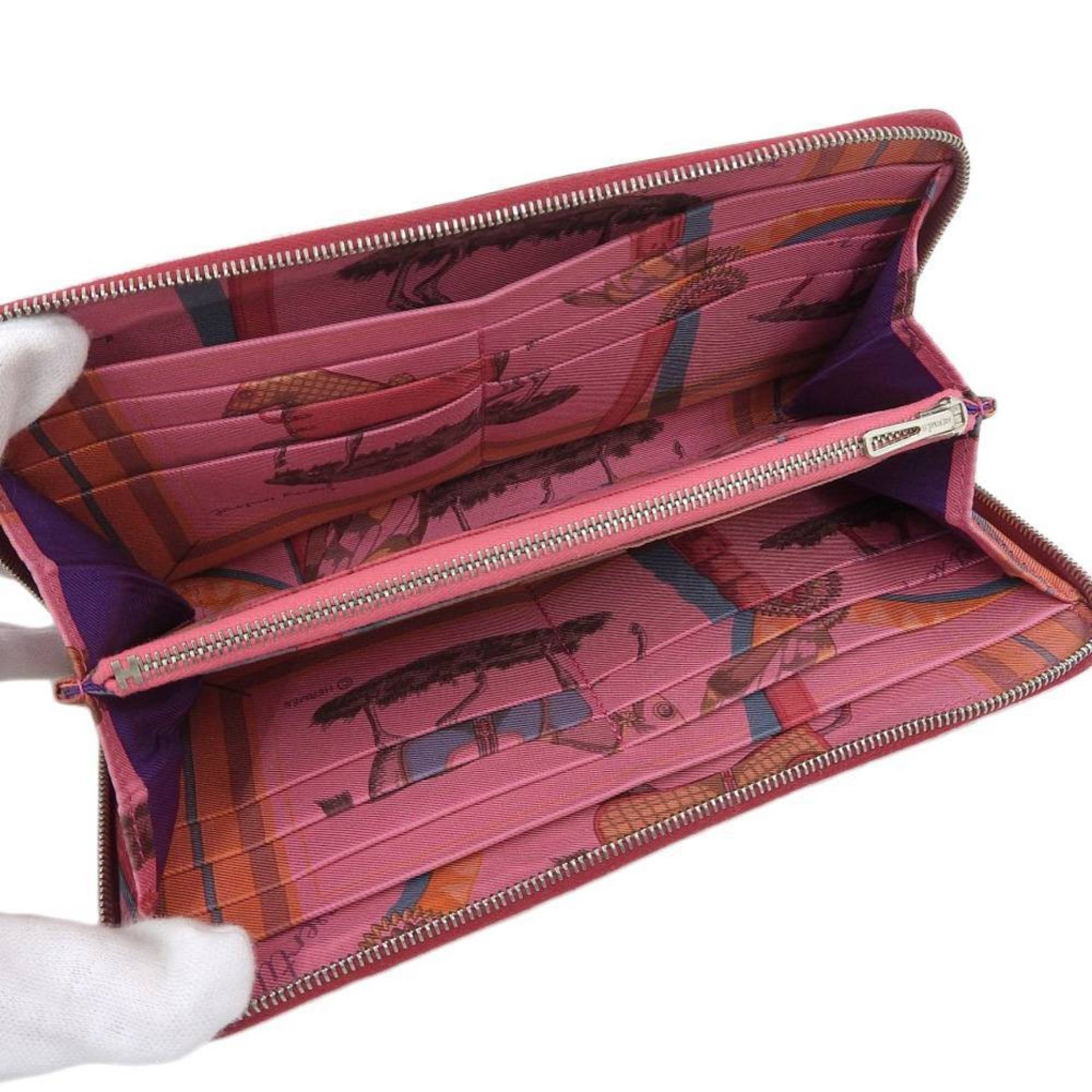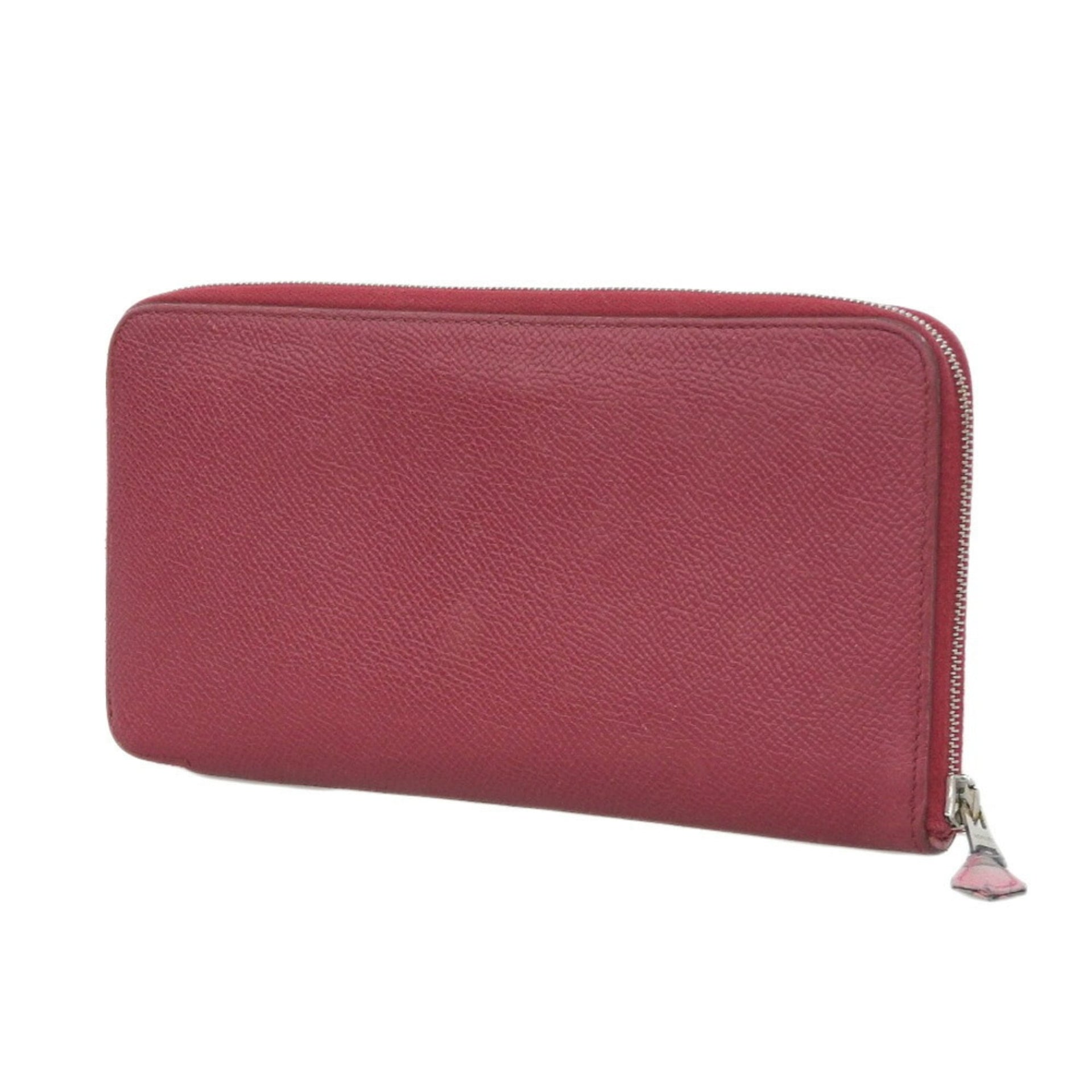 Hermes HERMES Azap Long Silk In Round Zipper Wallet Couchbel Rouge Ash Red □N Engraved