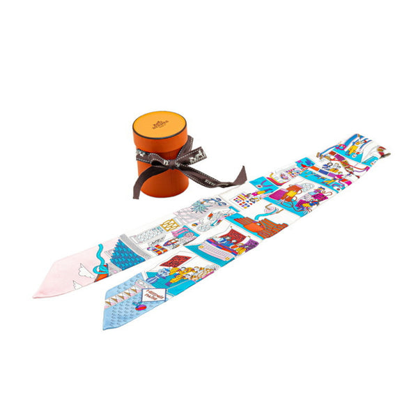 Hermès Twilly LA MAISON DES CARRES Scarf, White and Multicolor Silk, Women\'s, HERMES
