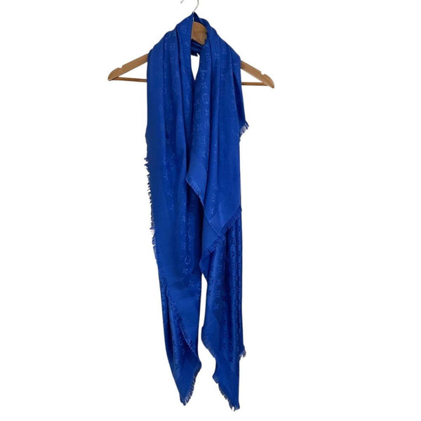 LOUIS VUITTON Louis Vuitton Silk Wool Monogram Shawl, Large, Stole/Scarf, M75242, Blue, Men\'s/Women\'s