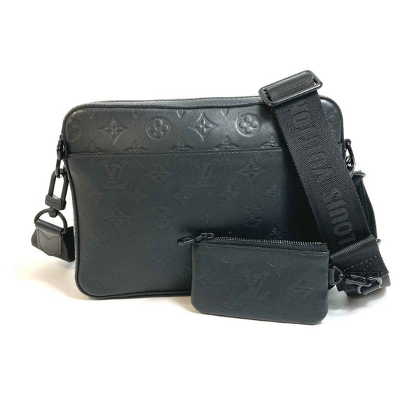 LOUIS VUITTON M69827 Monogram Shadow Duo Messenger Body Bag in Leather, Black