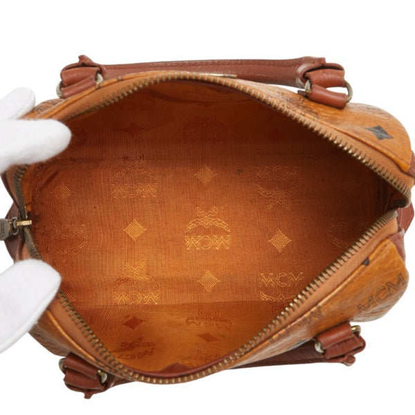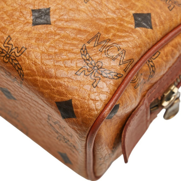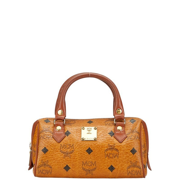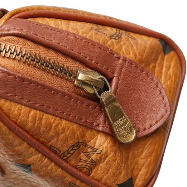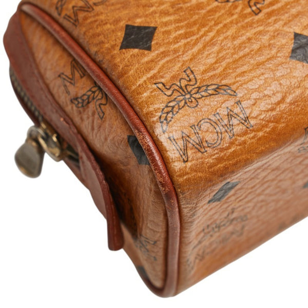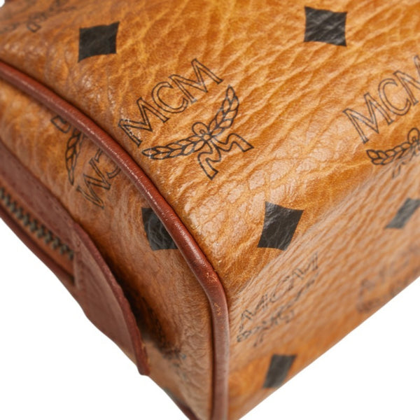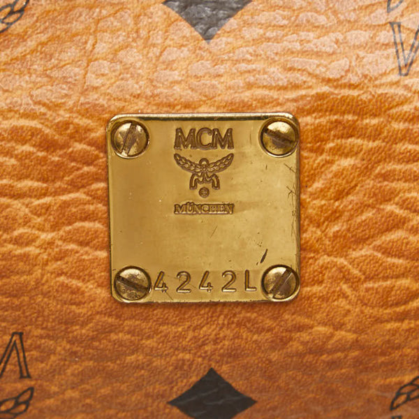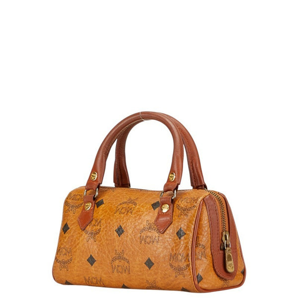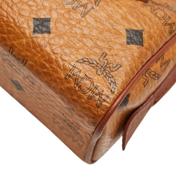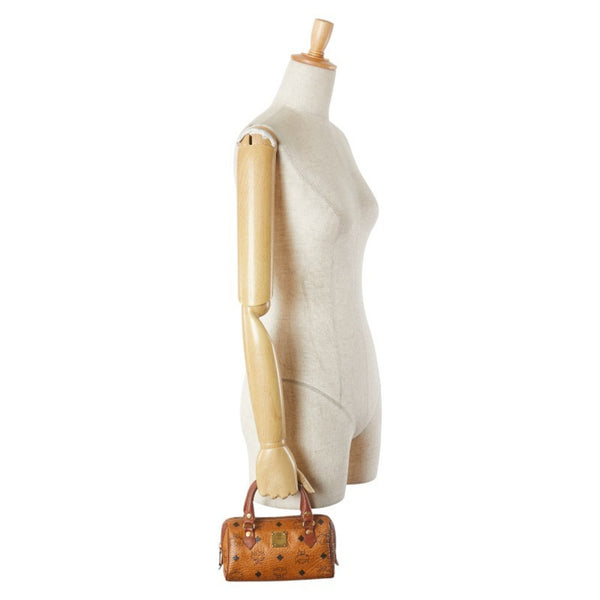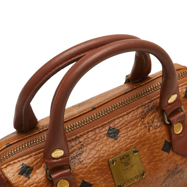 MCM Visetos Logogram Mini Boston Bag, Brown Leather, Women\'s