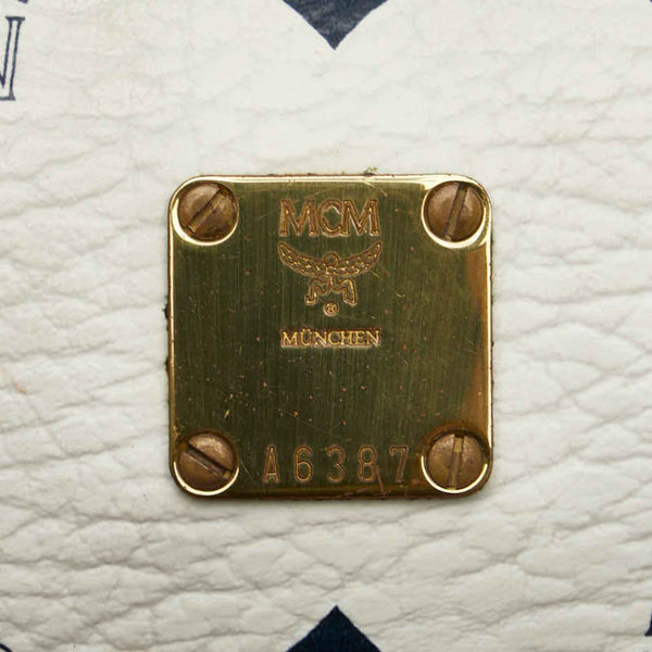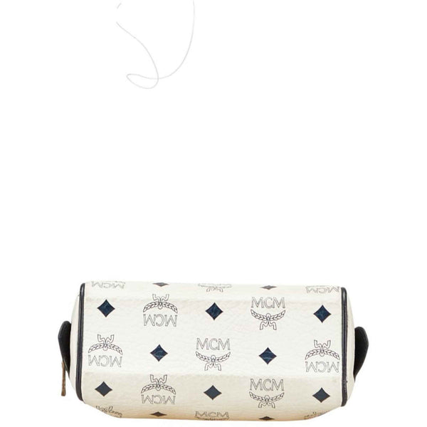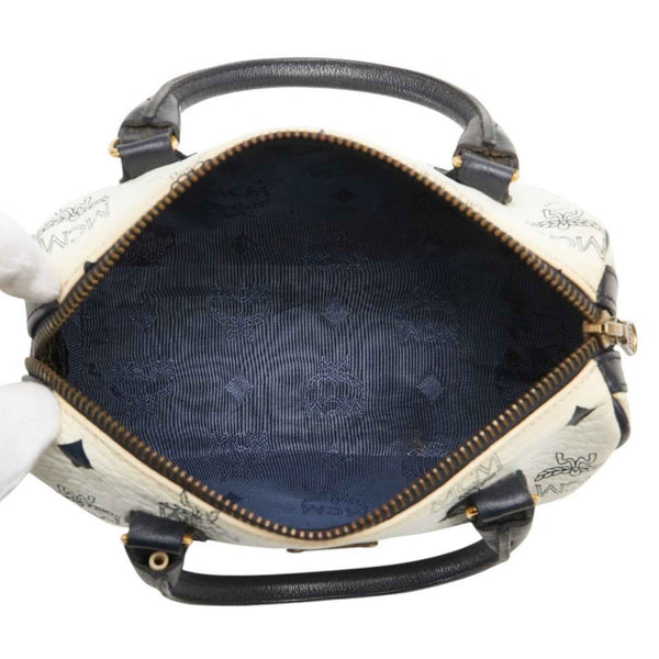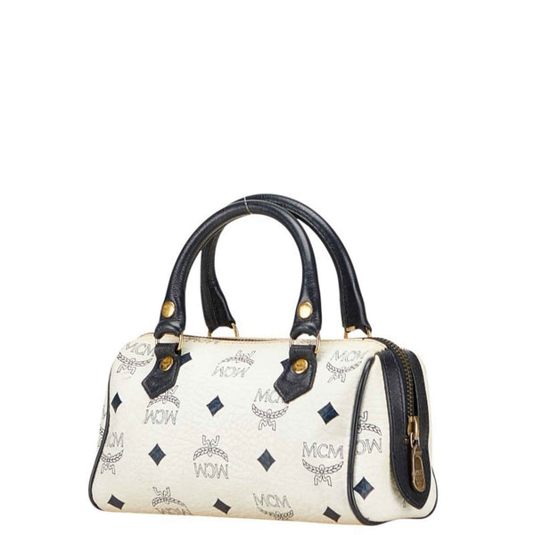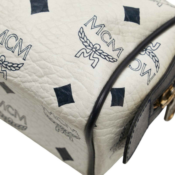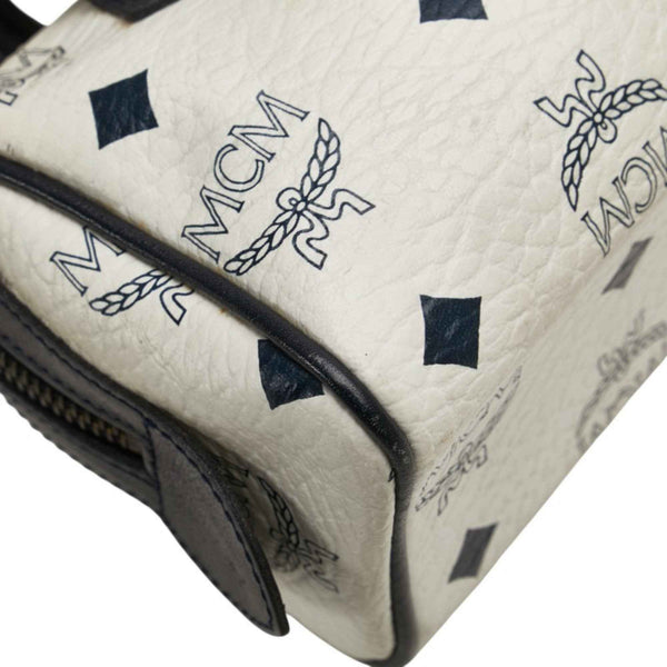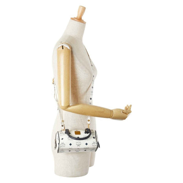 MCM Visetos Monogram Mini Boston Bag/Shoulder Bag, 2-Way, White/Black Leather, Women\'s