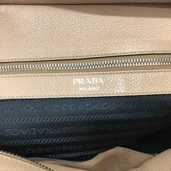 PRADA 1BG203 Logo Tote Bag, Leather, Women\'s, Beige