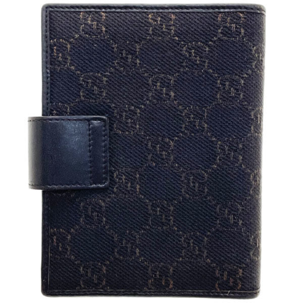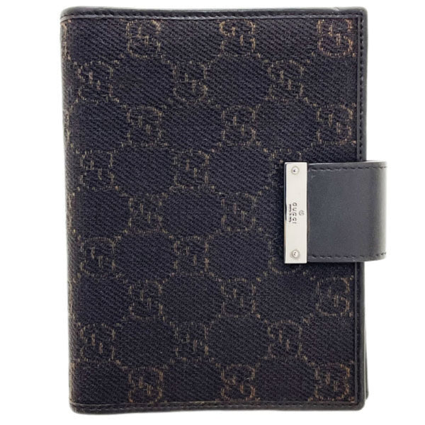 Gucci Notebook Cover GG Denim Canvas Leather Dark Brown 74259 GUCCI Notepad 6-Hole NN-13888