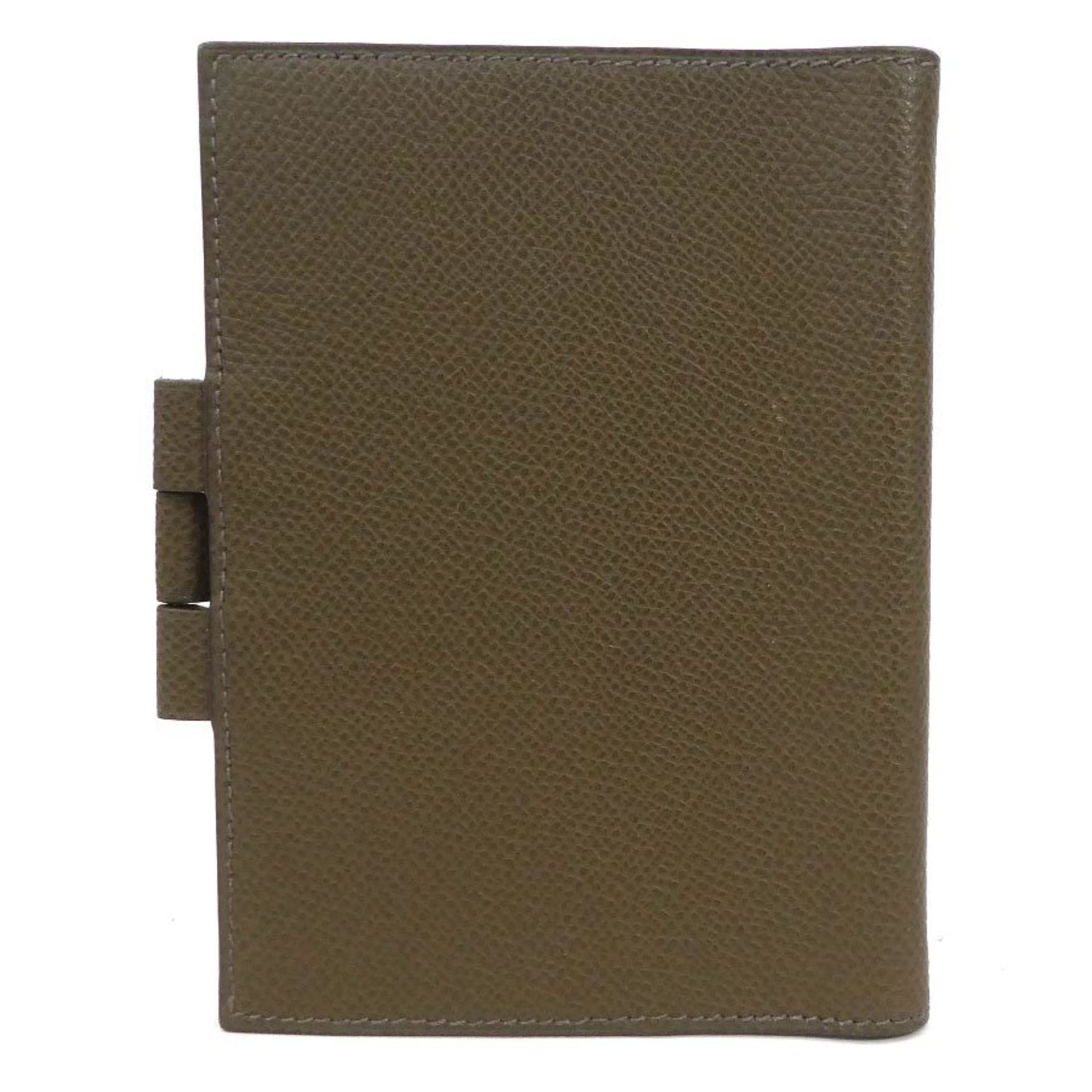 Hermès HERMES Leather Notebook Cover, Khaki Brown, Men\'s and Women\'s, e60899a