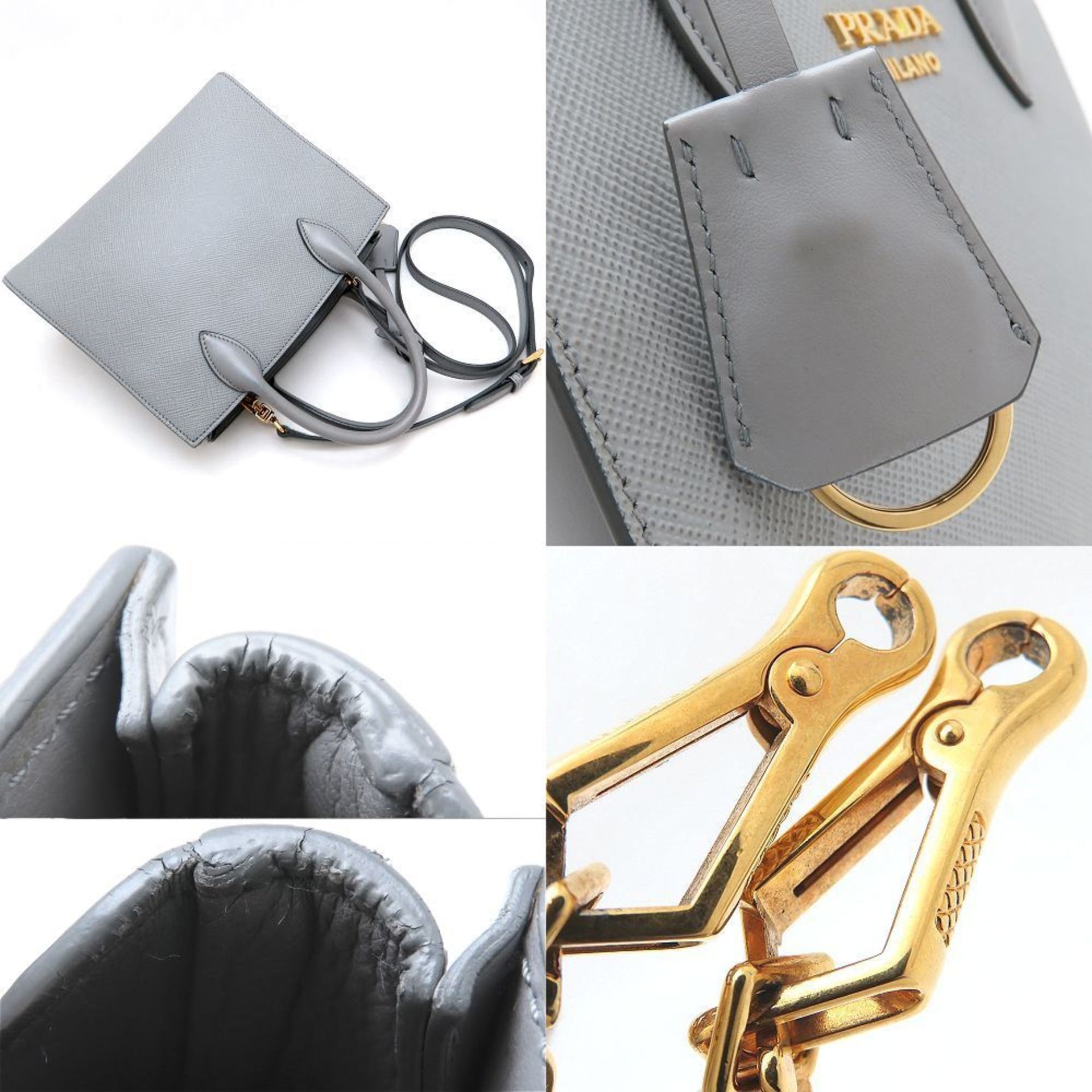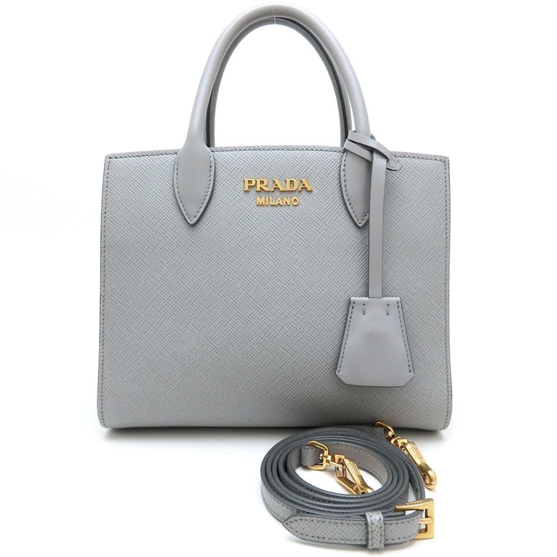 PRADA 1BA284 2-Way Handbag in Saffiano Leather, Gray, Women\'s, 352941