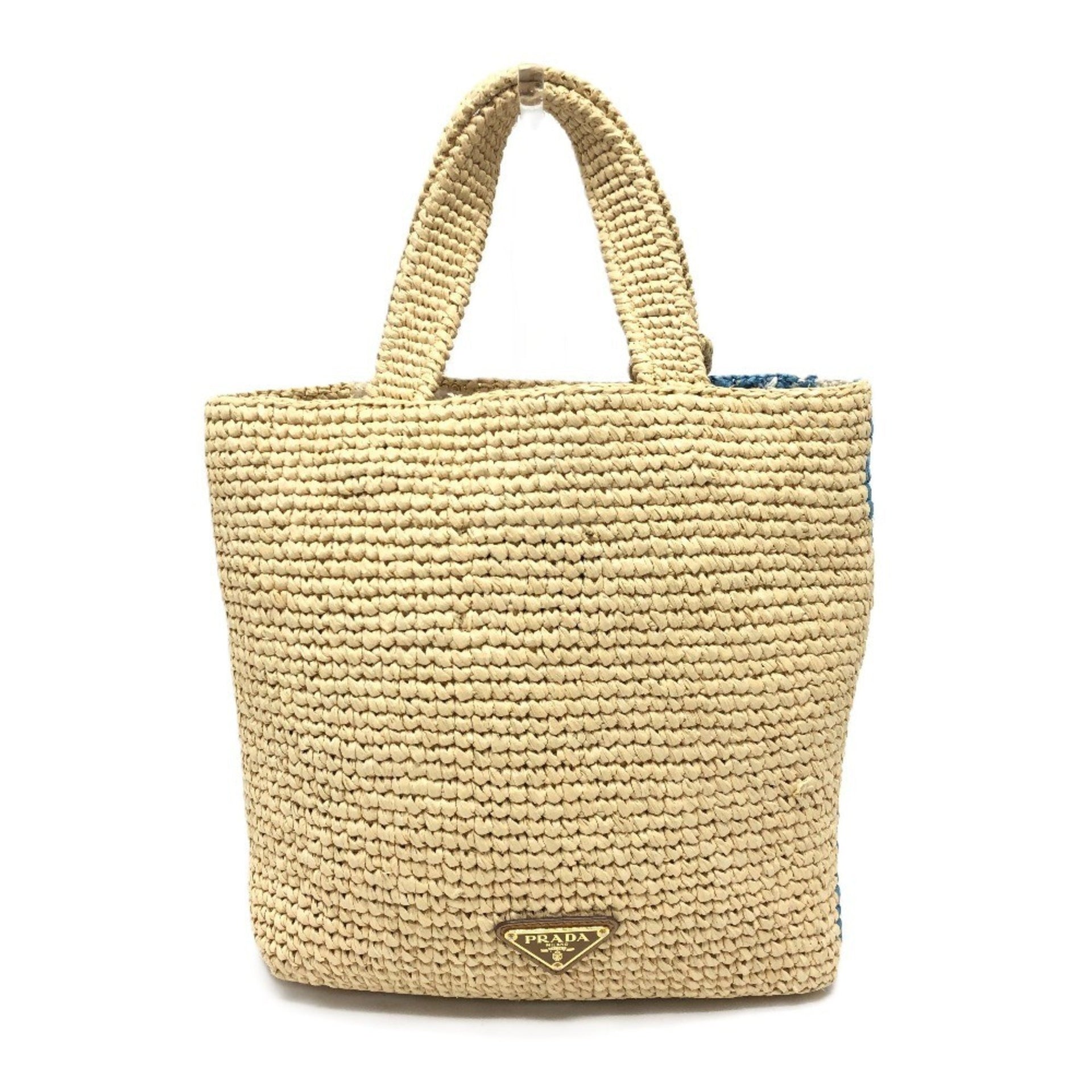 PRADA 1BG454 Logo St. Barths Limited Edition Small Handbag, Raffia, Women\'s, Beige