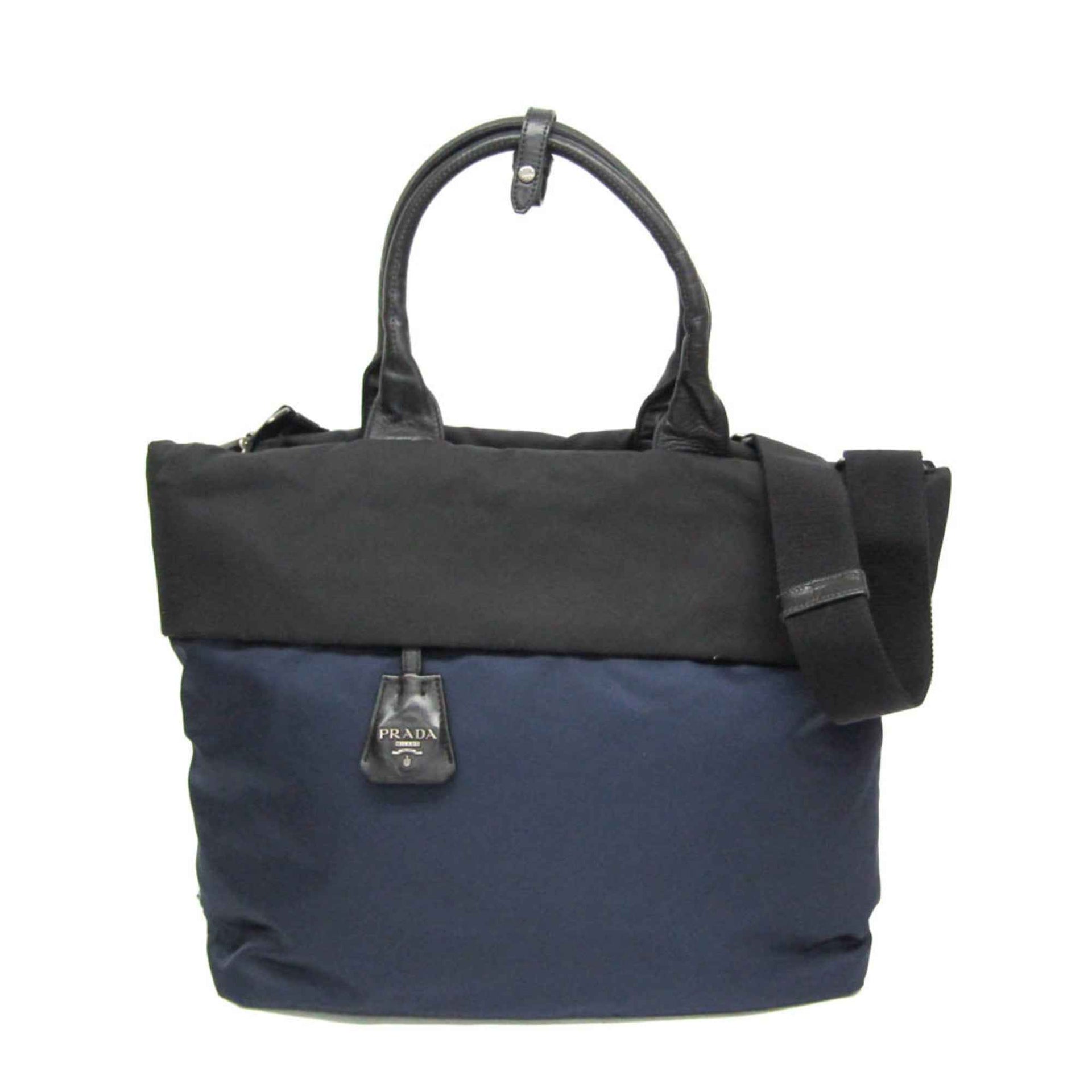 Prada 1BG521 Women\'s Leather,Nylon Handbag,Shoulder Bag Black,Navy