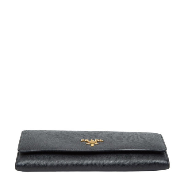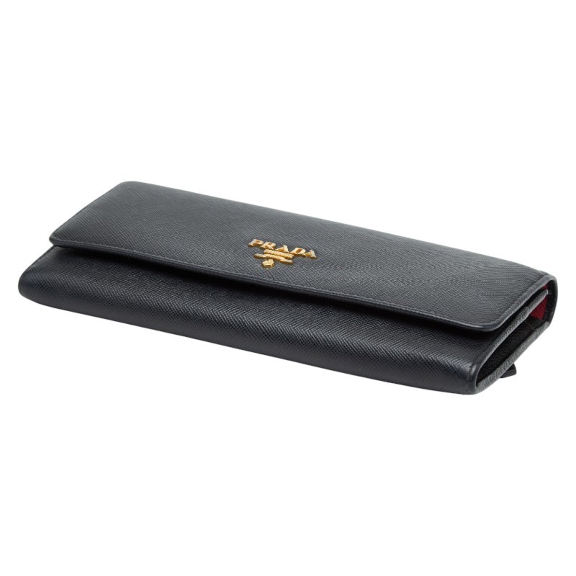 Prada Logo Long Wallet 1M1132 Black and Pink Saffiano Leather Women\'s PRADA