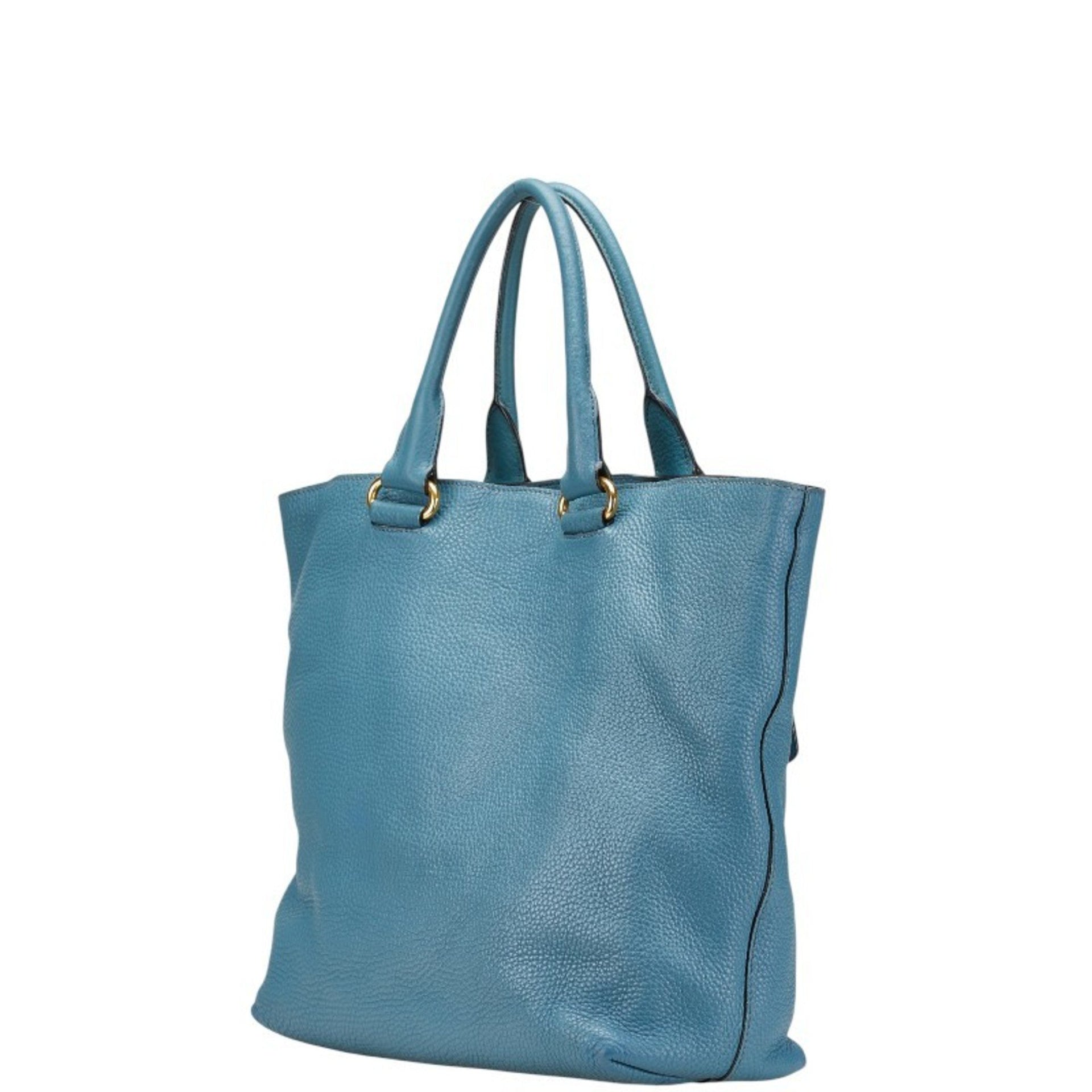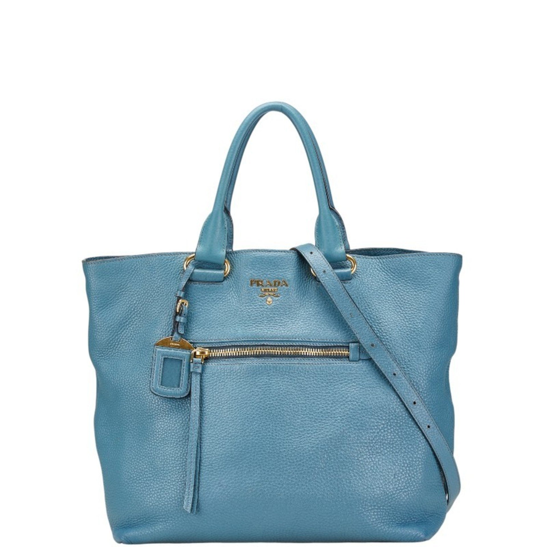 Prada Logo Metal Tote Bag/Shoulder Bag, 2-Way, Blue Leather, Women\'s, PRADA