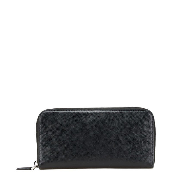 Prada Logo Saffiano Long Wallet in Black Leather for Women