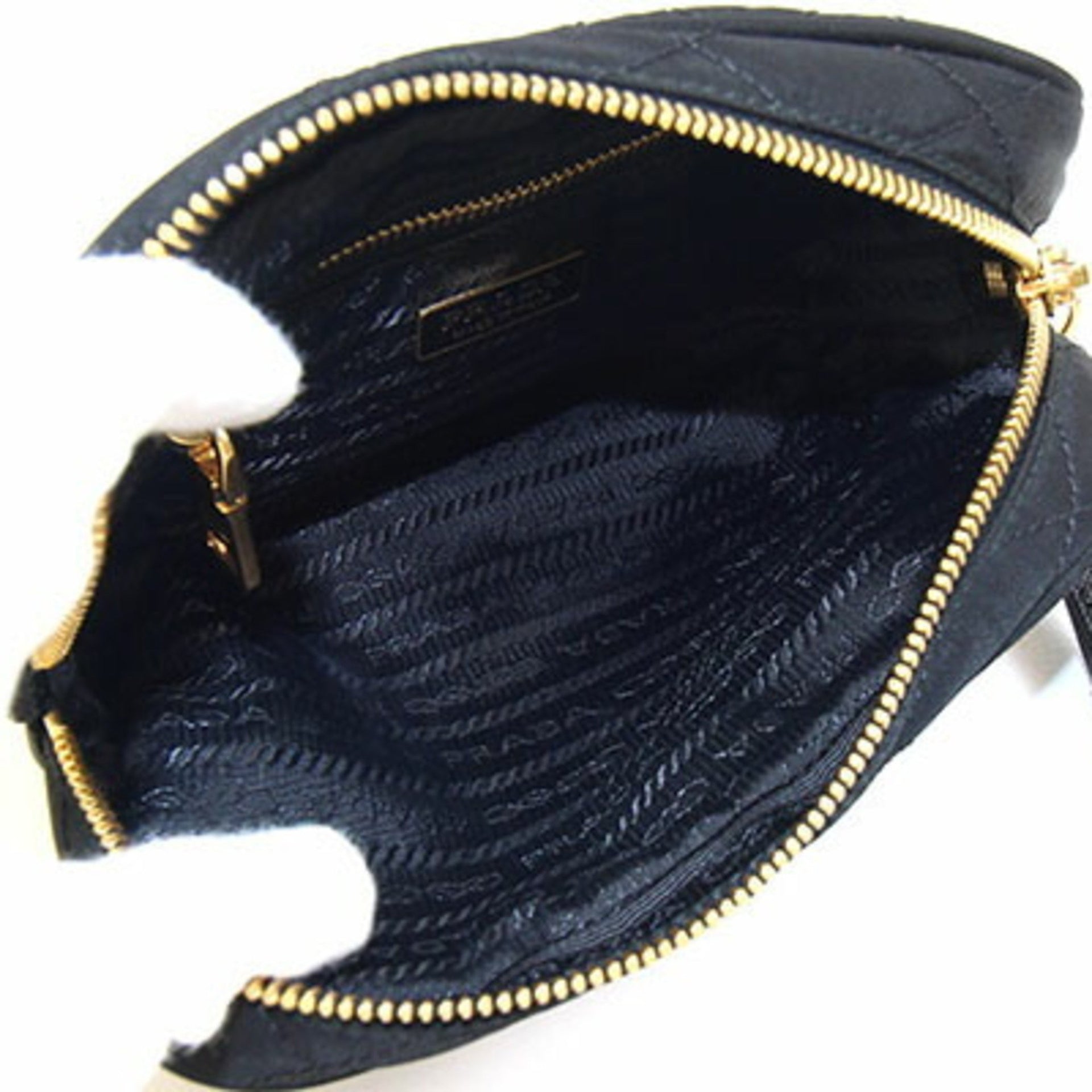 Prada Pouch 1NE021 Black Nylon and Leather Clutch Bag with Strap, Floral Embroidery, Women\'s, PRADA