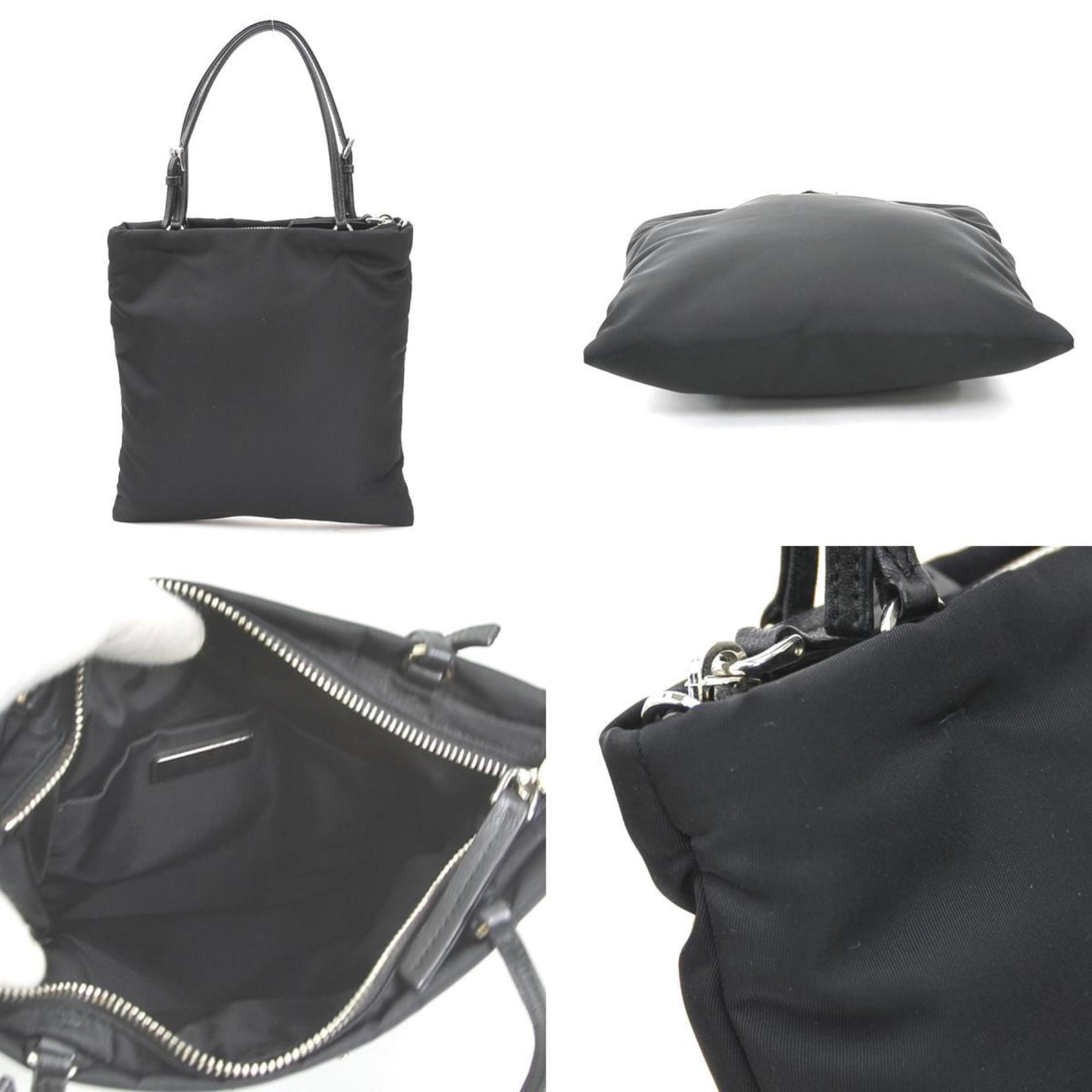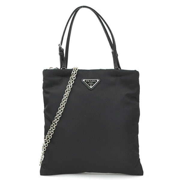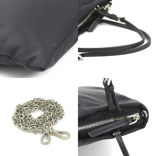 Prada PRADA handbag shoulder bag nylon leather black silver women\'s e60773a