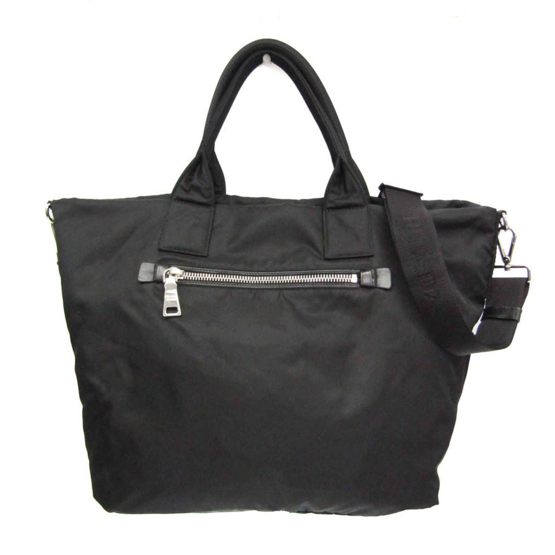 Prada Reversible BR4521 Women\'s Nylon,Leather Handbag,Shoulder Bag Black,Khaki,Multi-color