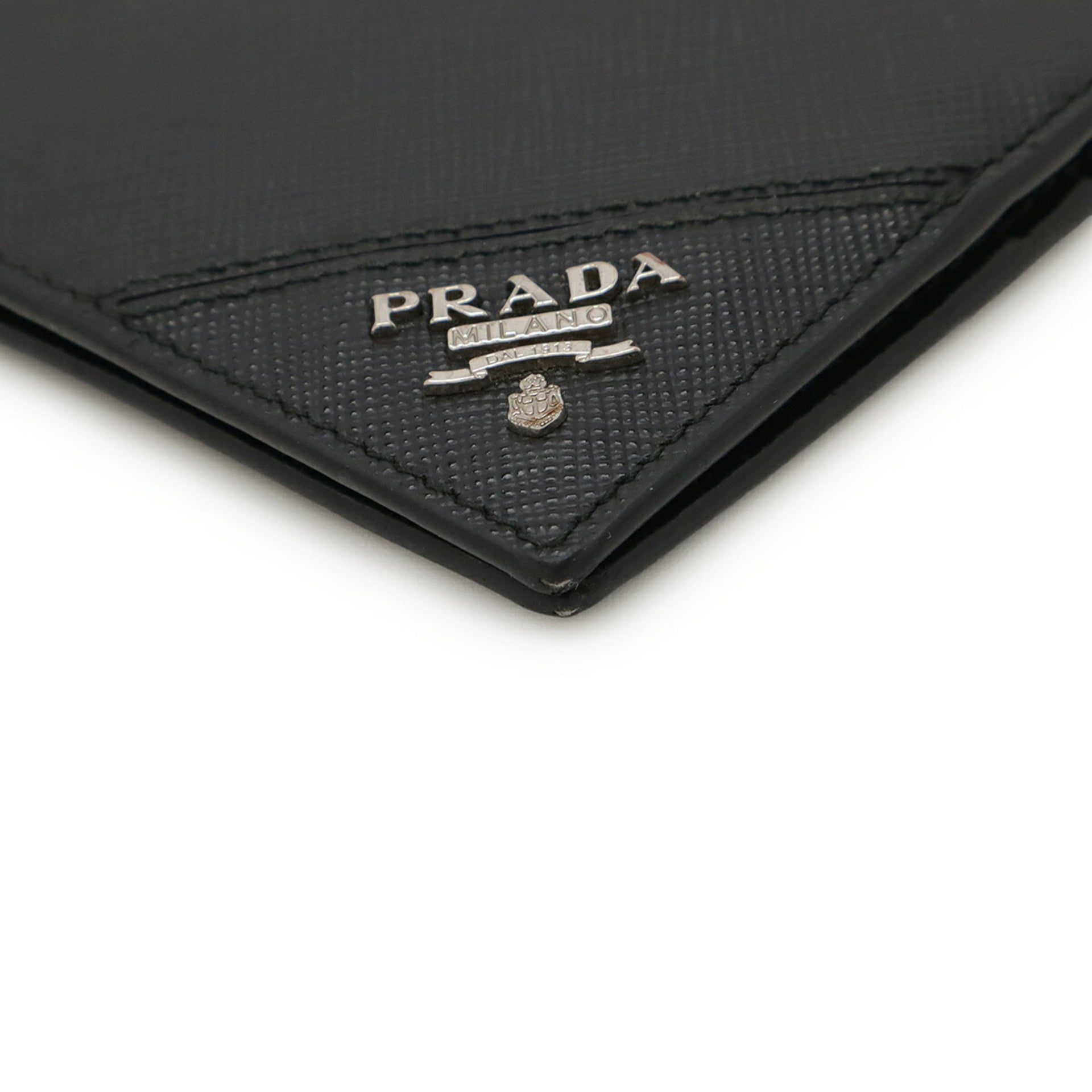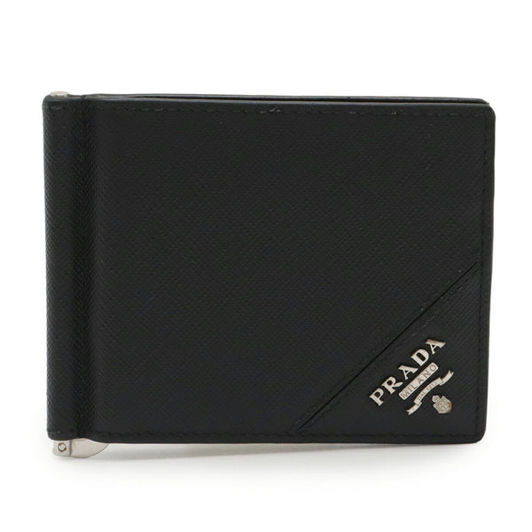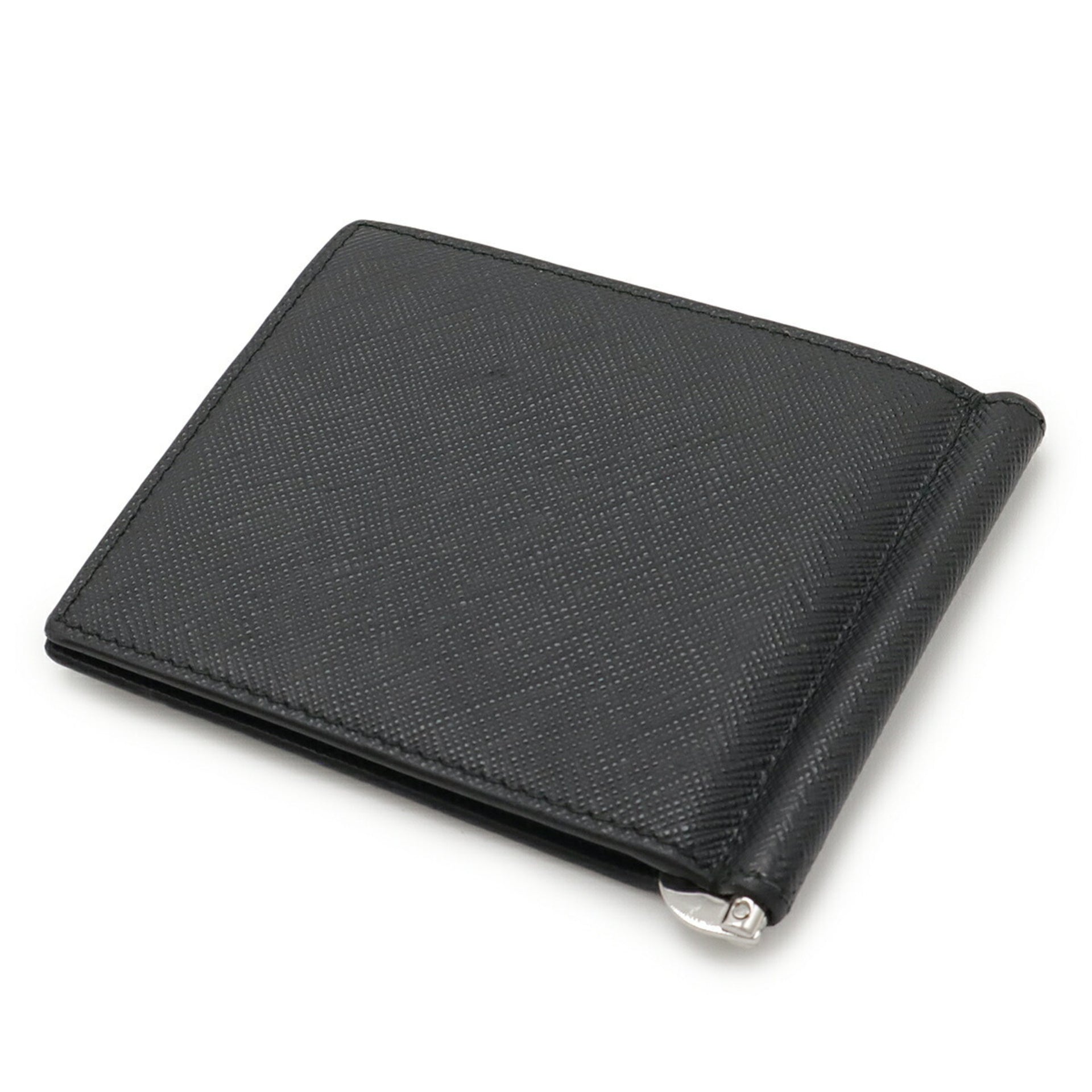 PRADA SAFFIANO METAL Bi-fold Wallet with Money Clip, Black Leather, NERO, 2MN077