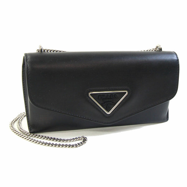 Prada Shoulder Bag 1NR001 Black Leather Chain Triangle Women\'s PRADA